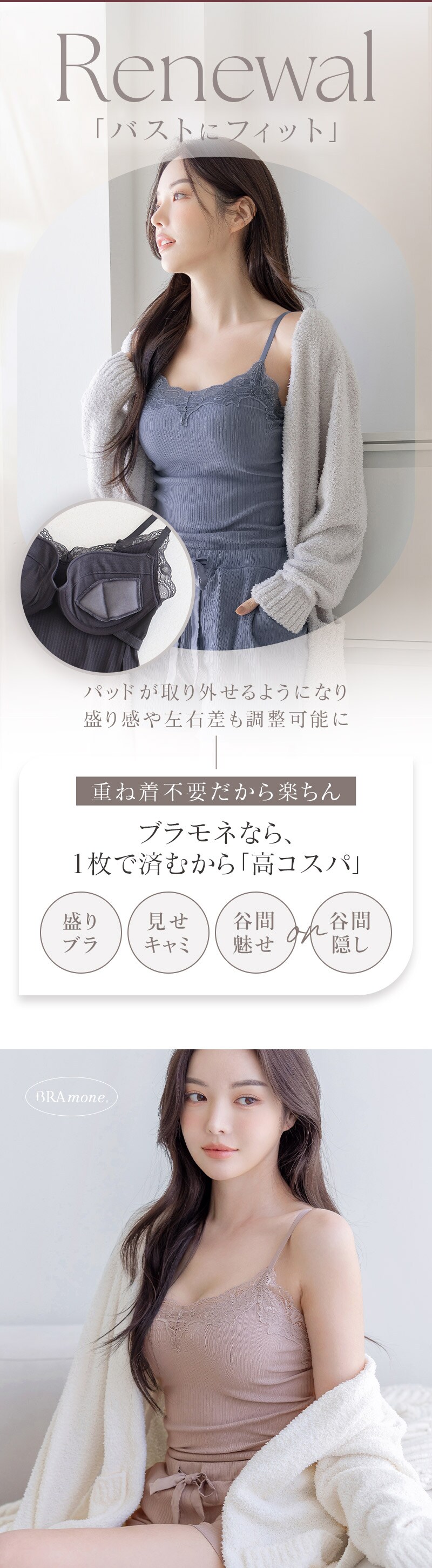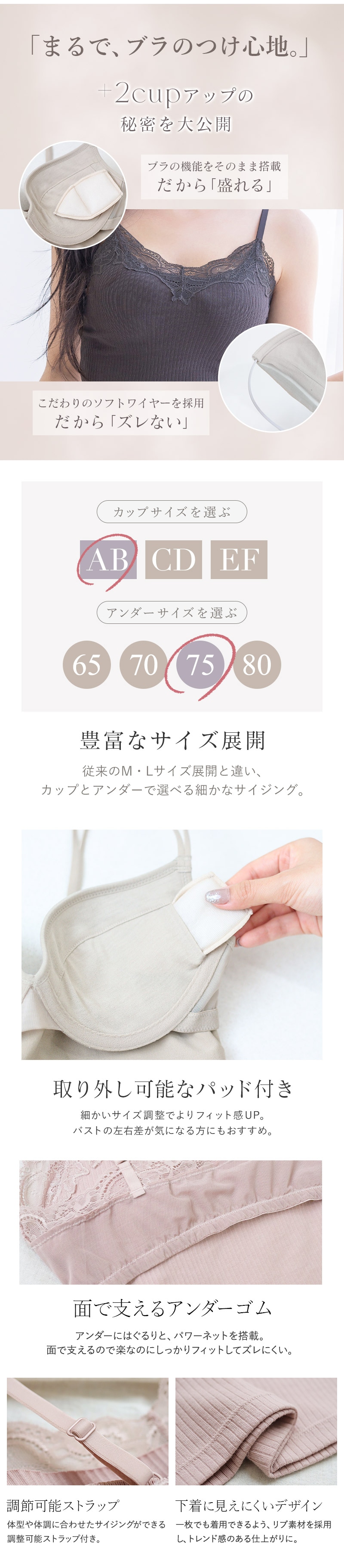 tu-hacciの人気No.1インナー。盛りブラ一体型キャミで、下着+インナーの重ね着のわずらわしさから解放。