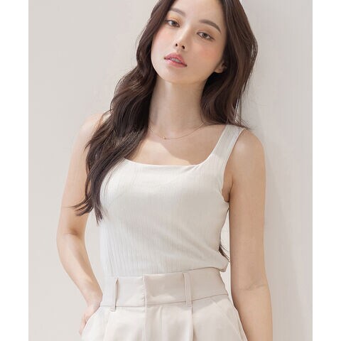 《ナチュ盛りtype》スクエアネックタンクトップ ノンワイヤー ブラトップ カップ付き リブ おしゃれ【tu-hacci】 XL キナリ