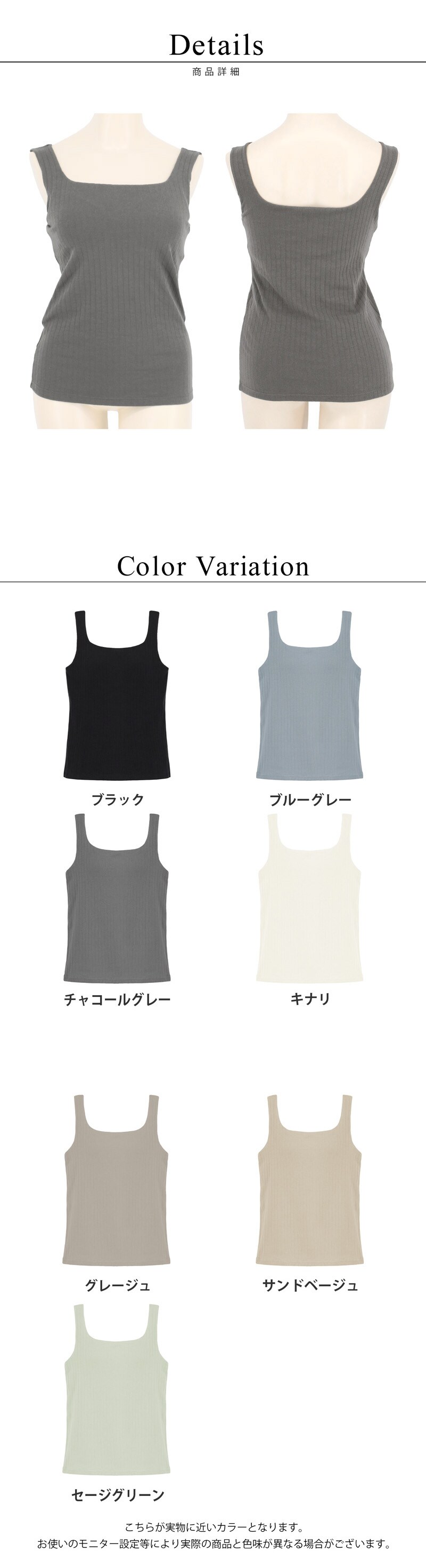 《ナチュ盛りtype》スクエアネックタンクトップ ノンワイヤー ブラトップ カップ付き リブ おしゃれ【tu-hacci】 XL ブラック