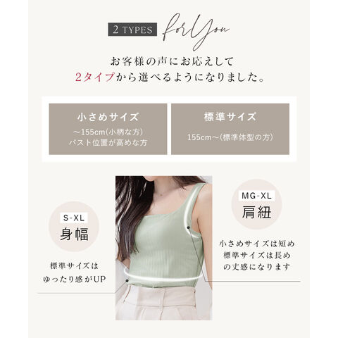 ※バストにハリがある方やFカップの方は谷間が目立つことがあるため、気になる場合は1サイズ上をお選びください。