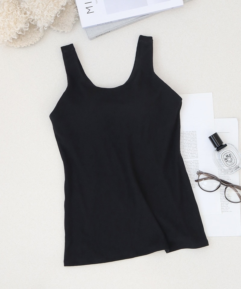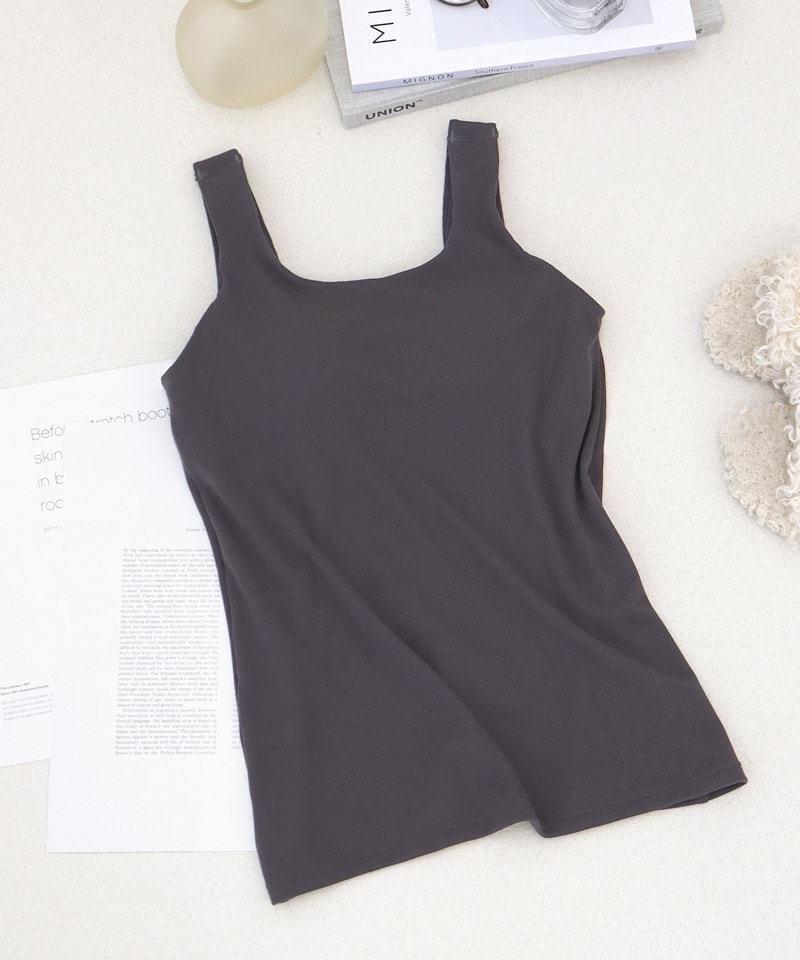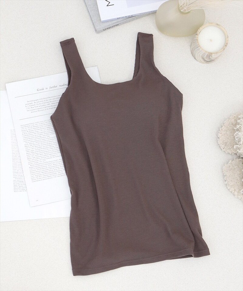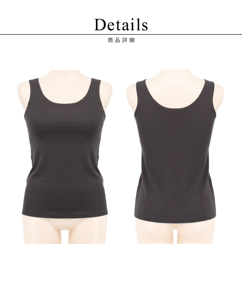 カップ付き タンクトップ ノンワイヤー リブ ブラトップ インナー おしゃれ タンク ブラ一体型【tu-hacci】MG ブラック