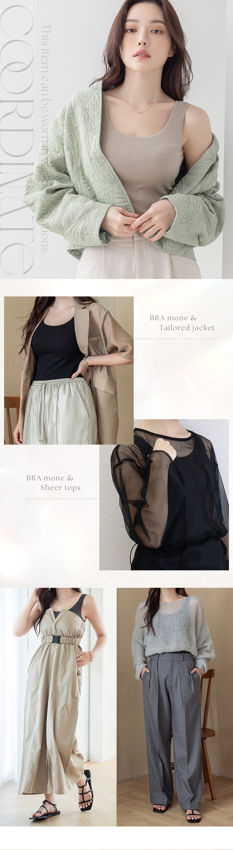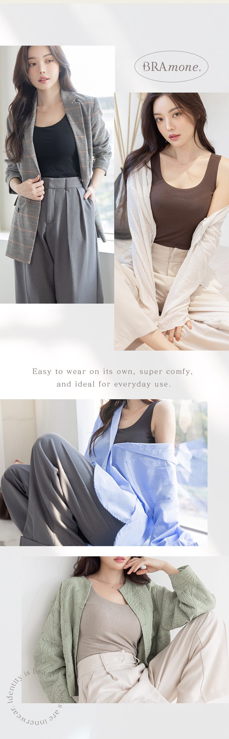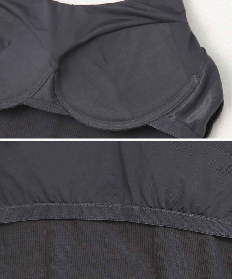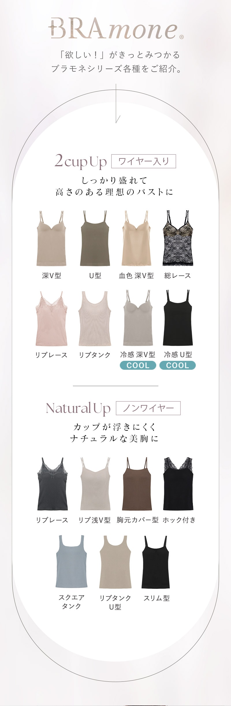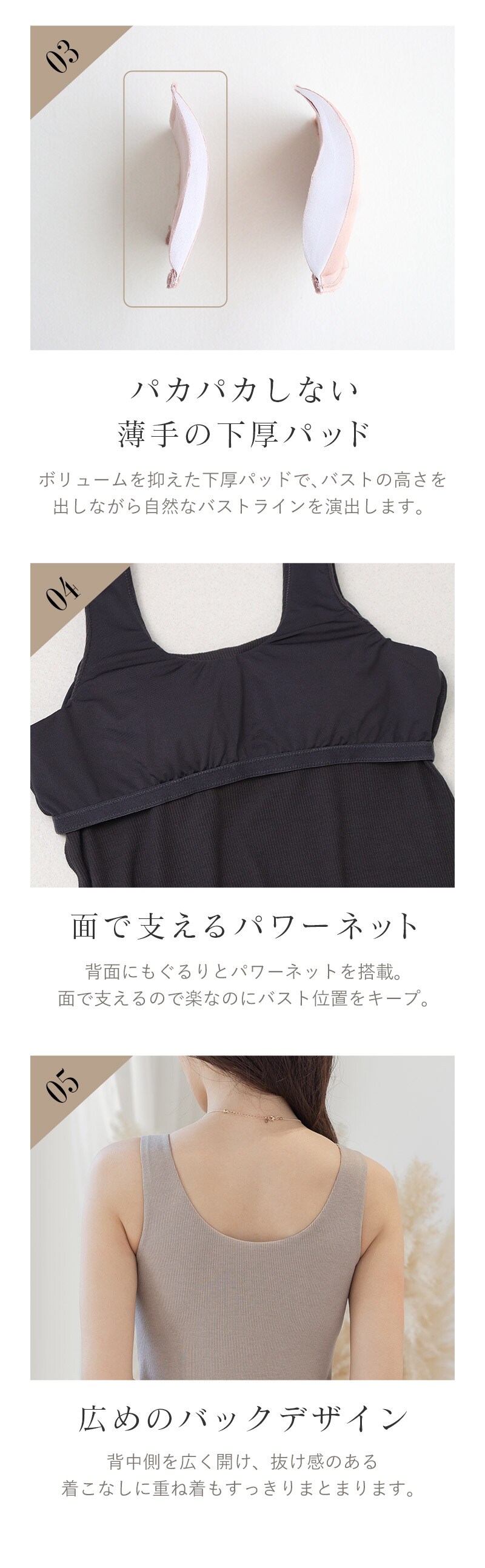 tu-hacci Inner Collection ブラキャミ単品 ~楽盛りインナーBRAmone(ブラモネ)シリーズ~ tu-hacciの人気No.1インナー。ブラ一体型で下着+インナーの重ね着のわずらわしさから解放。 リブ素材で1枚で見せて着用できるので、コーディネートの幅が広がります。 インナーショップならではのノウハウを生かし、ワイヤレスでも自然な美胸メイクを叶えるカップを独自に開発。 「ナチュラルな盛り感が好き」「胸元や脇肉をカバーしたい」「カップが浮きやすくフィット感がほしい」方におすすめのシリーズです。 ■ワイヤレスでも「フィット◎」「美胸◎」 よりリラクシーな着け心地が特徴のノンワイヤータイプ。 締め付けず、自然にスタイルアップを叶える機能が満載。 【商品の特徴】 ・薄手の下厚パッドで自然なバストメイク ・首元が浮きにくく胸元のチラ見えをカバー ・見せて着られる綿混のリブ素材でコーディネートに取り入れやすい ・アンダーゴムは食い込みを軽減する平ゴムを採用 ・スムース生地で程よいホールド力とソフトな着用感を両立 【こんな方におすすめ】 ・ノンワイヤー派だけどバストの形が崩れるのが心配 ・窮屈な下着、ワイヤーの締め付けが苦手 ・バストボリュームが少なくカップ上部がパカパカしやすい ・自然な盛り感でバストをきれいに見せたい ・谷間や脇肉をさりげなく隠したい ・大きいサイズのカップ付きインナーが欲しい ・シアートップスやカーディガンに合わせるインナーに悩む 【こんな時におすすめです】 ・普段のインナーとして ・コーディネートに取り入れて ・おうち時間でのリラックスウェアとして ※こちらの商品は就寝中、ナイトブラとしてのご着用も可能です。 バストの横流れ防止など、より就寝中に特化した補正機能をお求めの方は、ナイトブラカテゴリ商品のご着用をおすすめいたします。 ※サイズは目安となり、着用感には個人差がございます。 ※バストの脂肪が少ない方でも、カップに隙間ができにくい仕様です。 ※バストにハリがある方やFカップの方は谷間が目立つことがあるため、気になる場合は1サイズ上をお選びください。 |