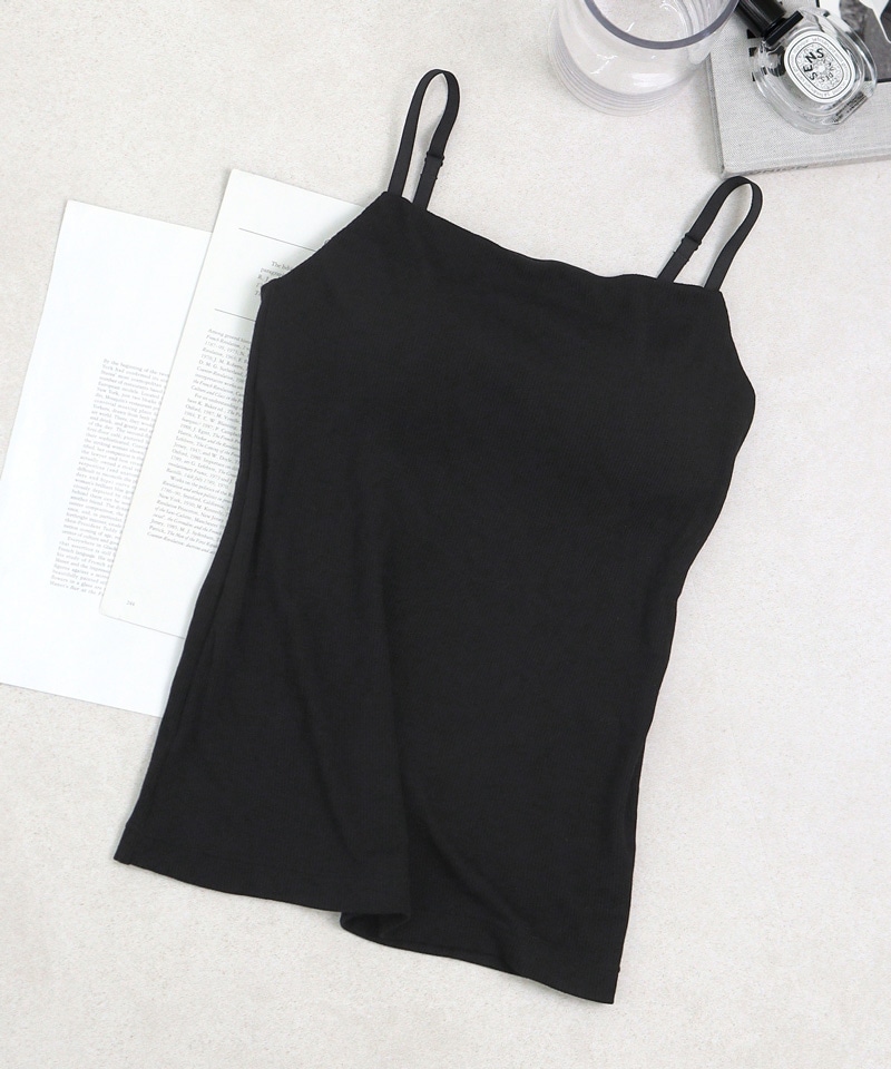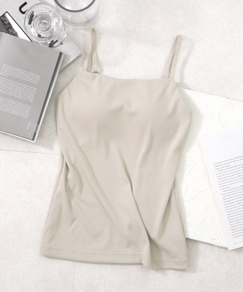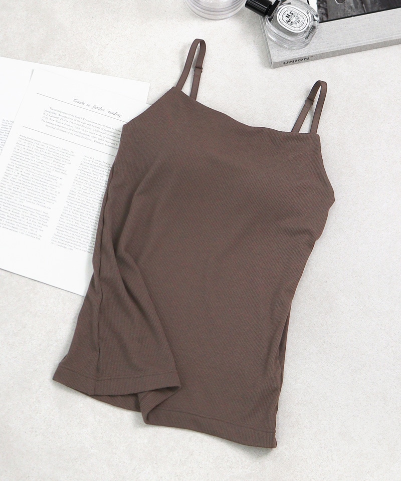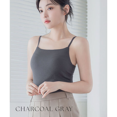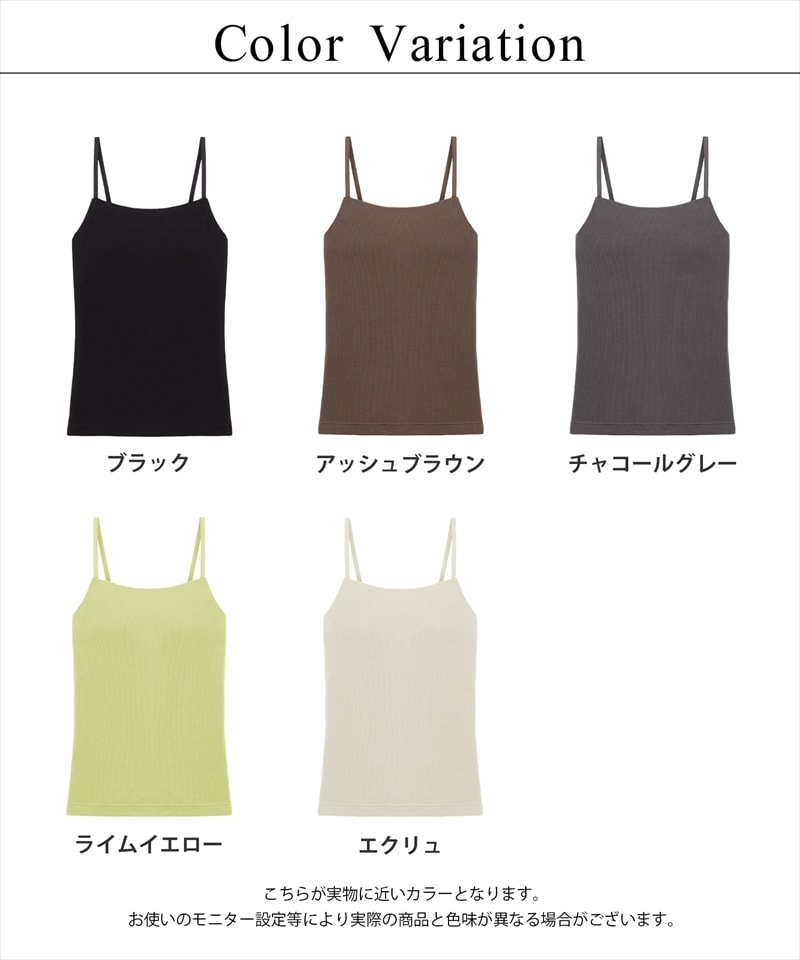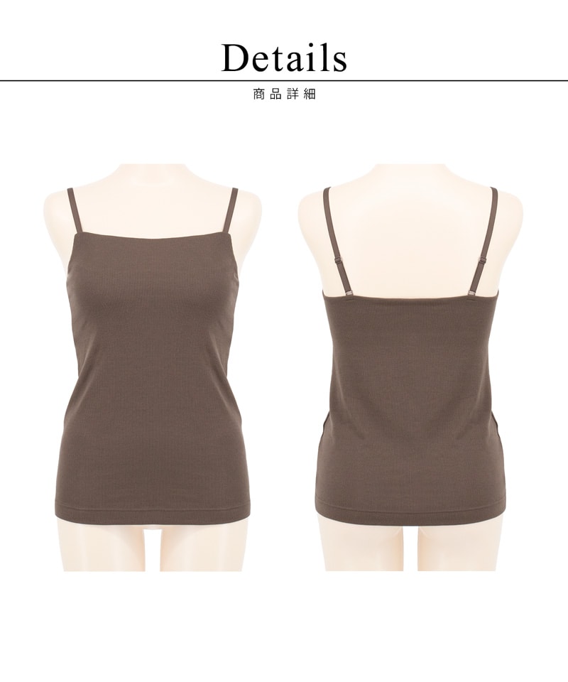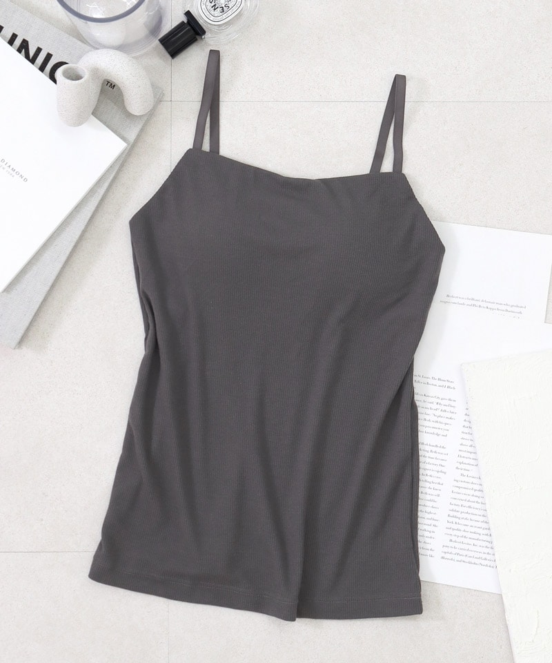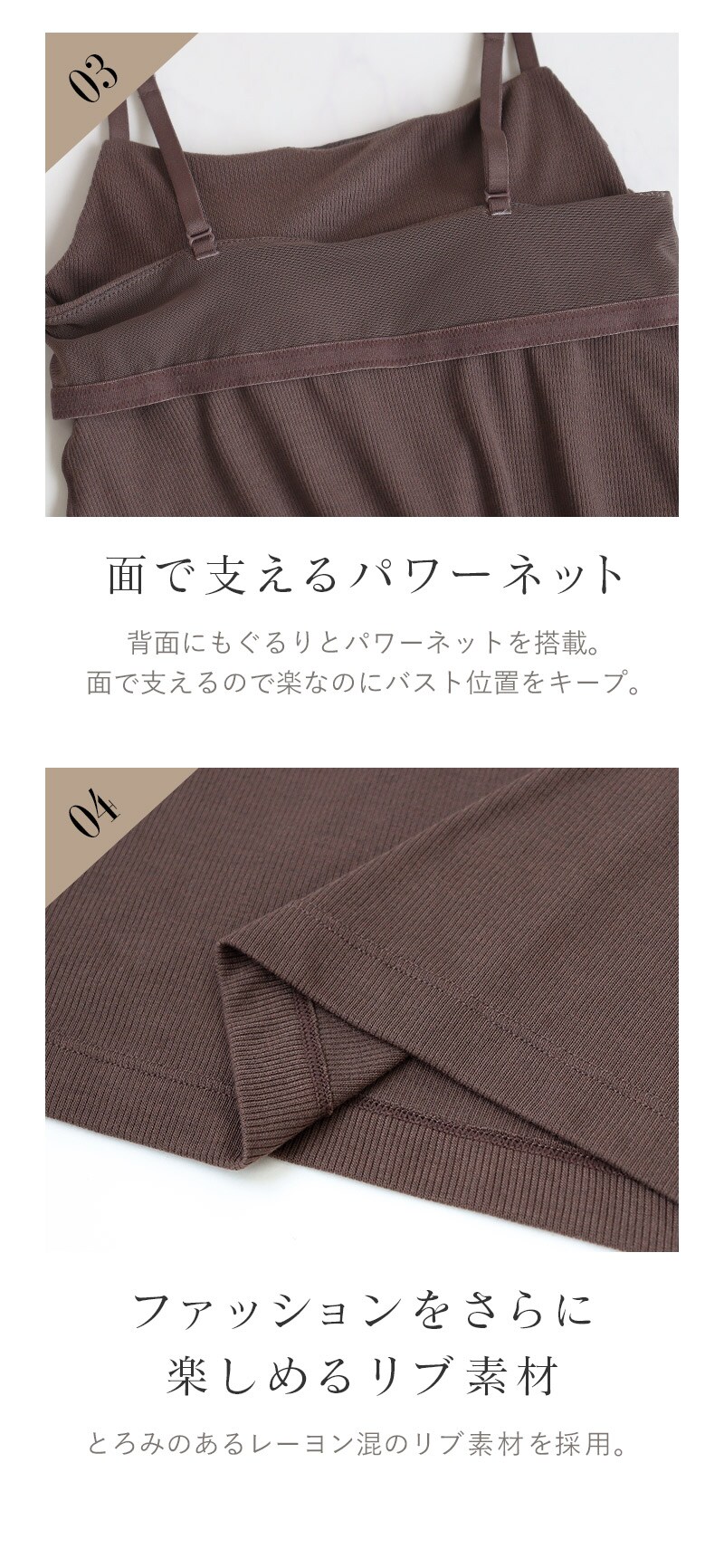 《ナチュ盛りtype》ブラトップ ノンワイヤー リブキャミ 胸元カバー型 ブラキャミ インナー カップ付き 谷間隠し 浮かない おしゃれ 【tu-hacci】 M チャコールグレー