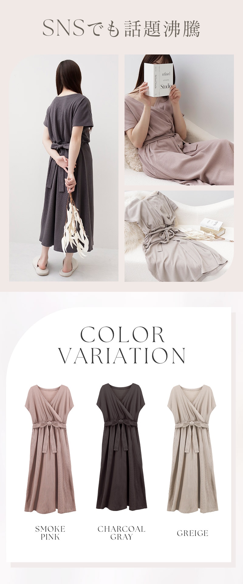 湯上がりワンピース【tu-hacci】 L スモークピンク