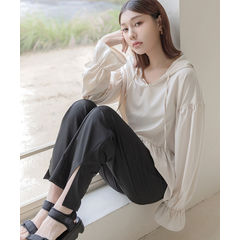 水陸両用フリルラッシュガード&スリットパンツ フード付き 紫外線対策 日焼け防止 UVカット 体型カバー 速乾 長袖 おしゃれ 上下セット【tu-hacci】 M オフホワイト