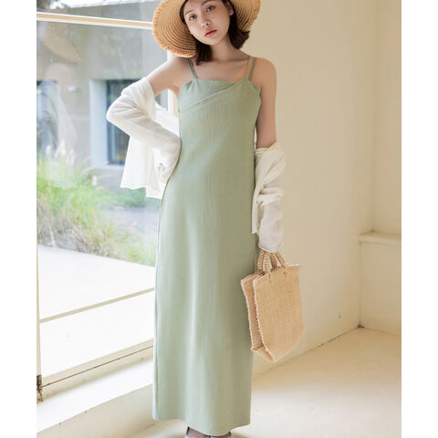 2wayリブカップ付きワンピース【tu-hacci】 アシメタイプ/S ロング丈/ライトカーキ