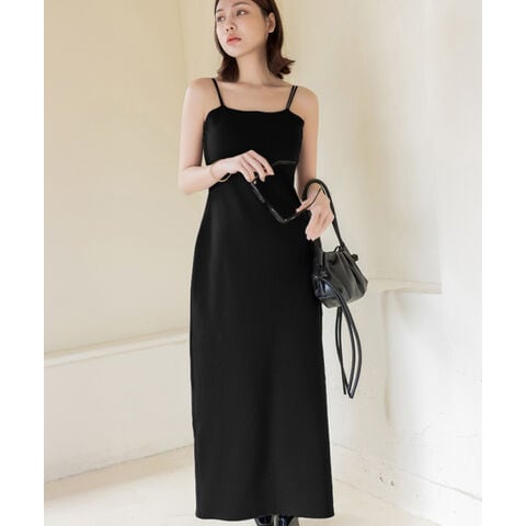 2wayリブカップ付きワンピース【tu-hacci】プレーンタイプ/M ロング丈/ブラック