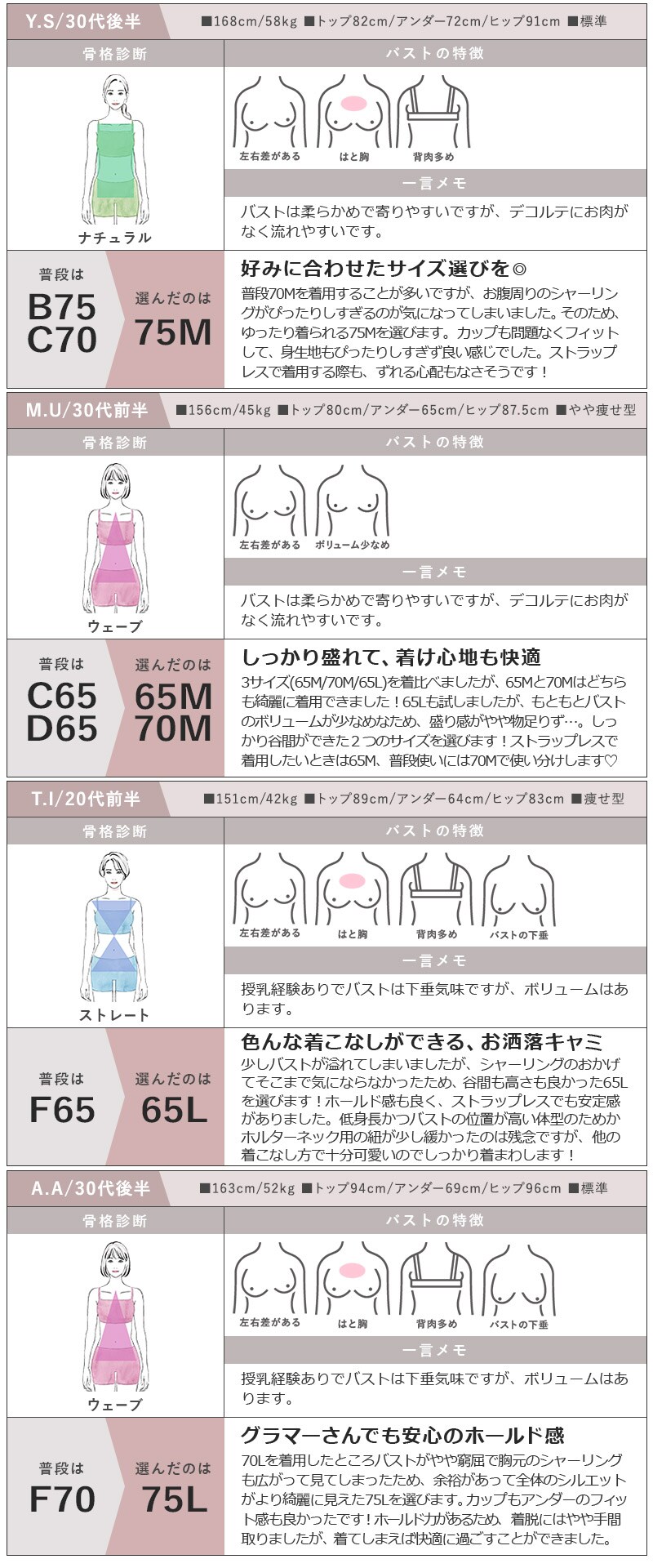 ストラップ取り外し:可 ストラップ長さ調節:可 パッド取り外し:不可 ワイヤー:なし ※商品のバーコードシールの印字が「2way」となっていますが、ストラップレス・ツインストラップ・ホルターストラップの3wayでお使いいただけます。 |