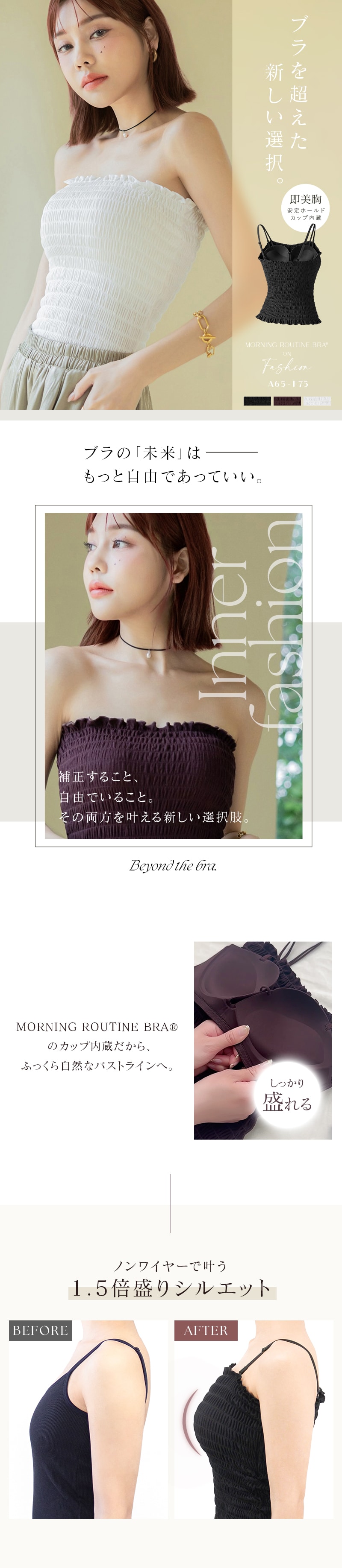 tu-hacci Inner Collection ブラトップ単品 1.5倍盛りを叶える3wayシャーリングブラトップ。 女性のボディラインを知り尽くした下着専門店のノウハウを活かして、 ノンワイヤーでも自然な丸胸をメイクする モーニングルーティンシリーズのカップを内蔵。 トレンド感のあるシャーリング素材と、取り外し可能な2種類のストラップで もっと自由にファッションを楽しむ、新しい選択肢をtu-hacciからご提案。 【こんな方におすすめ】 ・ワイヤーの窮屈感や痛いのが苦手 ・バストにボリュームが欲しいけど、胸元のチラ見えは避けたい ・ファッションアイテムとして主役にできる見せキャミがほしい ■ふっくら丸みのある1.5倍盛りシルエット ・人気No.1ノンワイヤーブラの盛りカップを採用 ・中央の隠しゴムが、美胸を長時間キープ ・背中までぐるりとパワーネット搭載し、ズレにくく安心の着心地 ・ボリュームアップしつつ、サイドはスッキリとした設計 ■ファッショナブルな見せキャミ ・トレンド感のあるシャーリング素材でコーデの主役に◎ ・様々なコーディネートを楽しめる、取り外し可能な2種類のストラップ ・カラーごとに異なる色味のカップ・パワーネットだから透けにくい ■チラ見え防止で視線が気にならない ・胸元高めデザインで“盛れる胸元隠し” ・前屈みになっても安心な“谷間隠し” ※お使いのスマホの画面によっては、実際の色味と異なる場合がございます。 ※しっかりとしたフィット感がお好みの場合は、小さめのアンダーサイズをご検討ください。 |