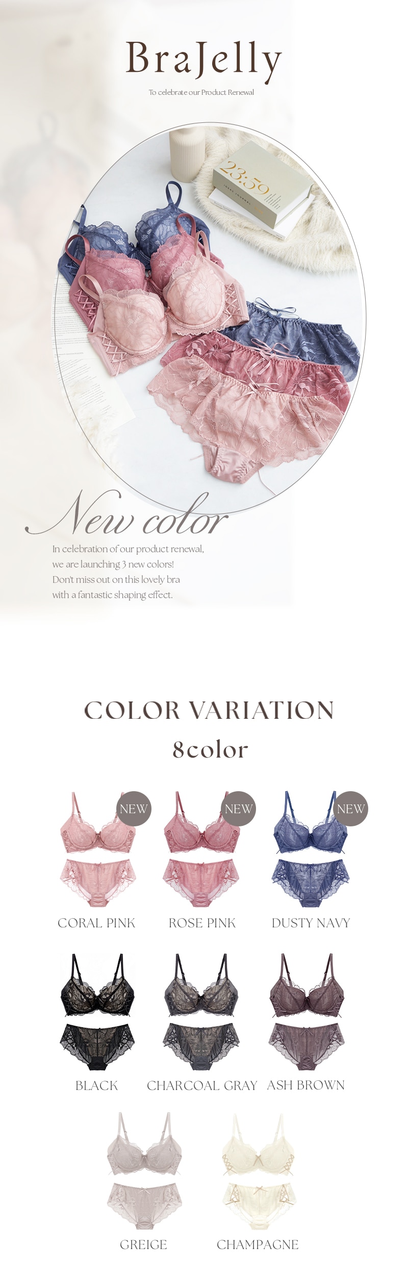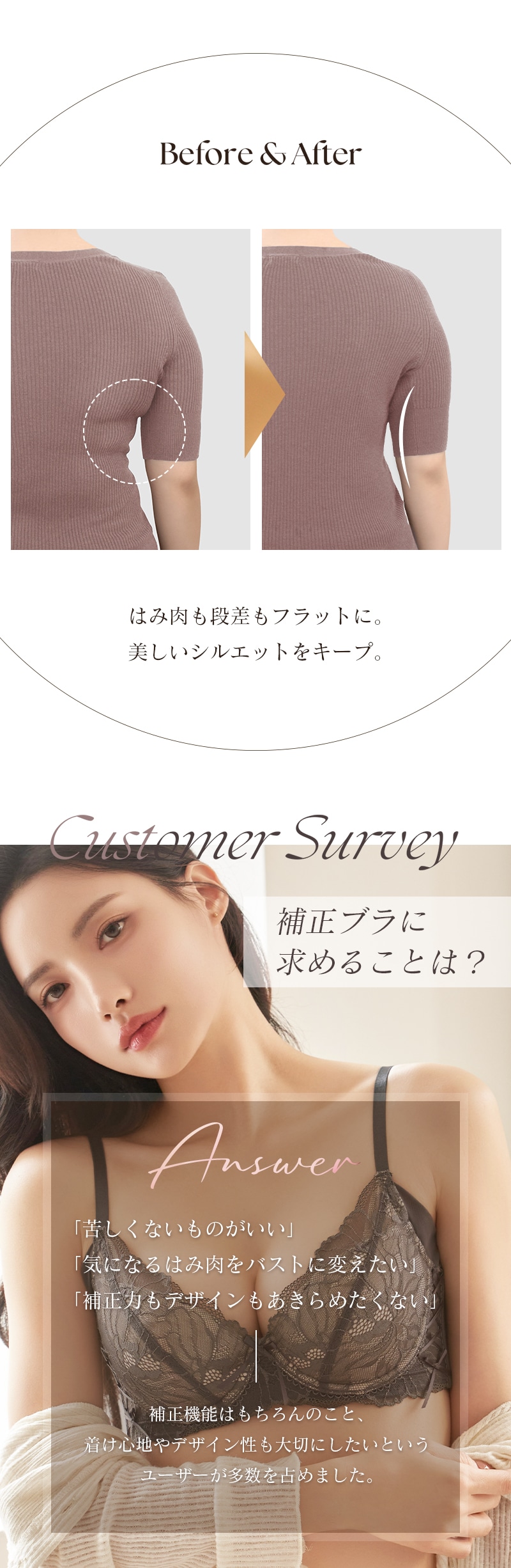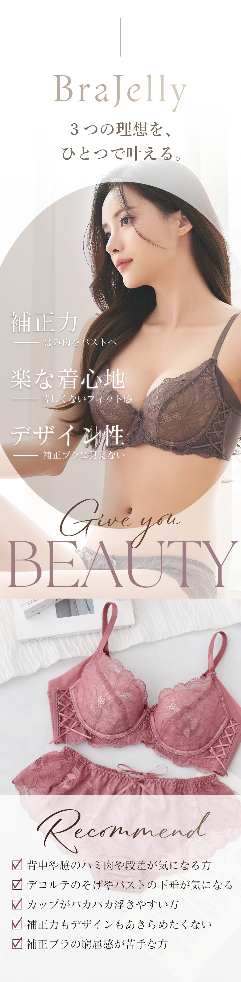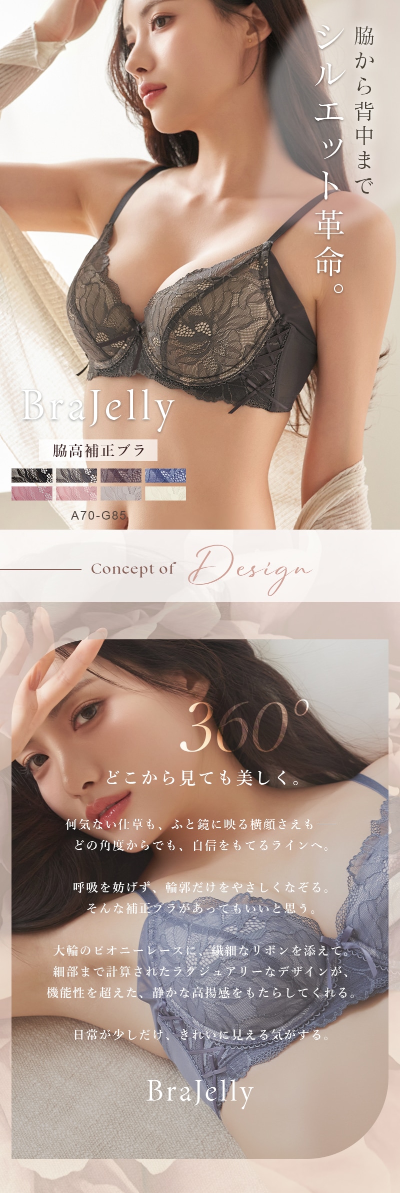 tu-hacci Bra&Shorts Collection ブラ&ショーツ / 計2点セット 補正ブラに見えない脇肉撃退ブラ~Bra Jelly(ブラジェリー)シリーズ~ 凛と咲き誇る芍薬をモチーフにした 《Bra Jelly》ピオニーレースブラ ボディの持つ美しさを最大限に引き出し、自信をもたらすランジェリー。 細部までこだわり抜いた贅沢デザインに、美補正機能を限りなく詰め込んで。 着けるたびバストも気持ちも花開く。 年齢を重ねるごとに、毎日をプレイフルに楽しみたい女性へ贈る 補正下着に見えない補正ブラシリーズです。 【こんな方におすすめ】 ・背中や脇のハミ肉や段差が気になる方 ・デコルテのそげやバストの下垂が気になる ・カップがパカパカ浮きやすい方 ・補正力もデザインもあきらめたくない ・補正ブラの窮屈感が苦手な方 オリジナルのフラワー刺繍で、全体を華やかにドレスアップ。 ヌーディな下地に芳しい花々が浮かび上がる、グラマラスな一着。 ■バスト丸ごとカップイン。高さのある華やぎバストをメイク 立体三枚ハギ構造でバストを潰さずふっくらリフトアップ。 パッド付きでボリューム調整可能。 ■幅広い体型に寄り添う設計 前中心クロスでずれにくく、しっかりバストにフィット。 華奢見えも◎ ■ムダ肉を逃さずキャッチ。脇高設計&パワーネット 幅広のバックベルトは背中の段差ができにくい仕様。 カップ脇のパワーネットとカバーパーツが、流れがちな脇のぷよ肉まで残さずブロック。 ■ショーツが選べる2種類の組み合わせ お好みのタイプからお選びいただけます。 ・Aタイプ…レースバックショーツ ・Bタイプ…フルバックショーツ ※ブラは共通です。 |