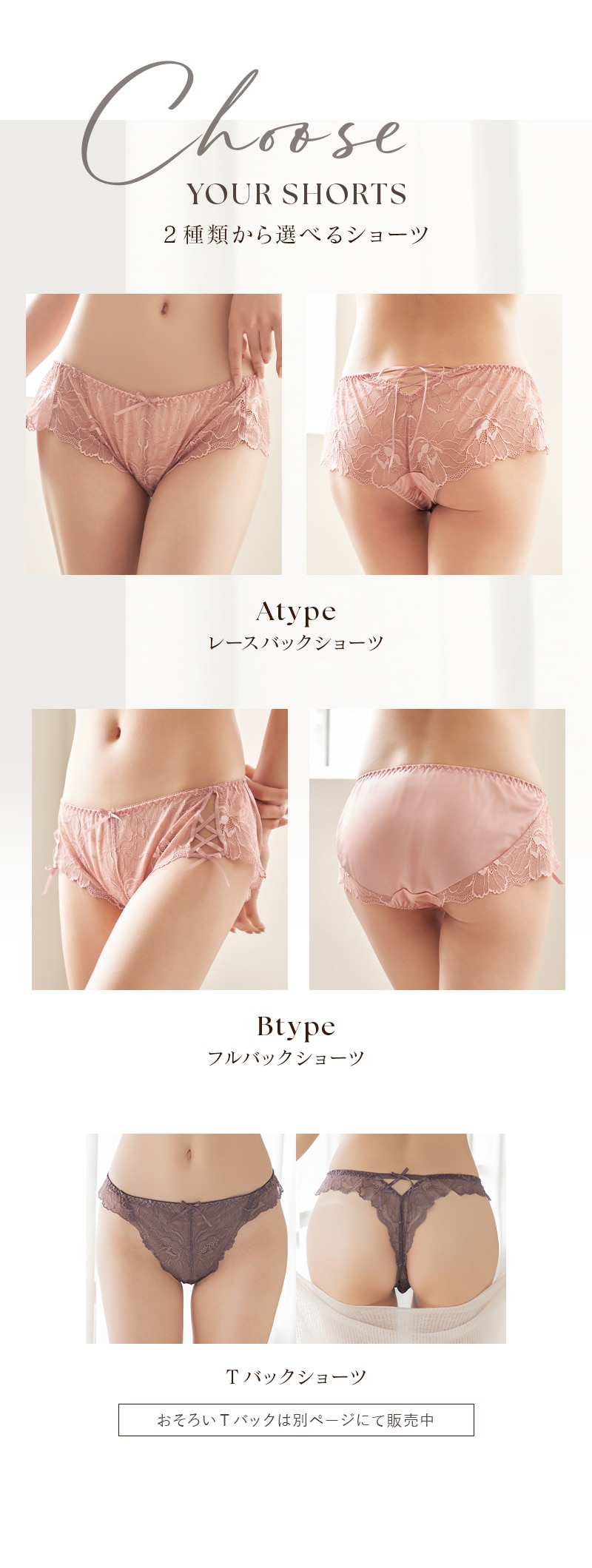 ブラジャー:無し Aタイプショーツ:有り Bタイプショーツ:無し |