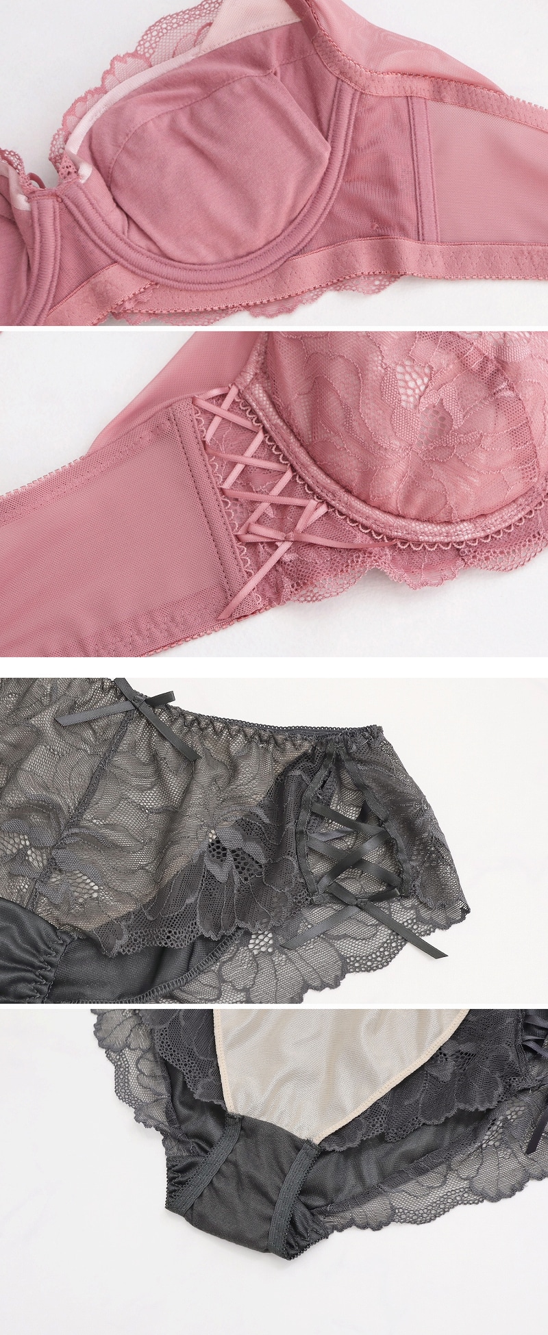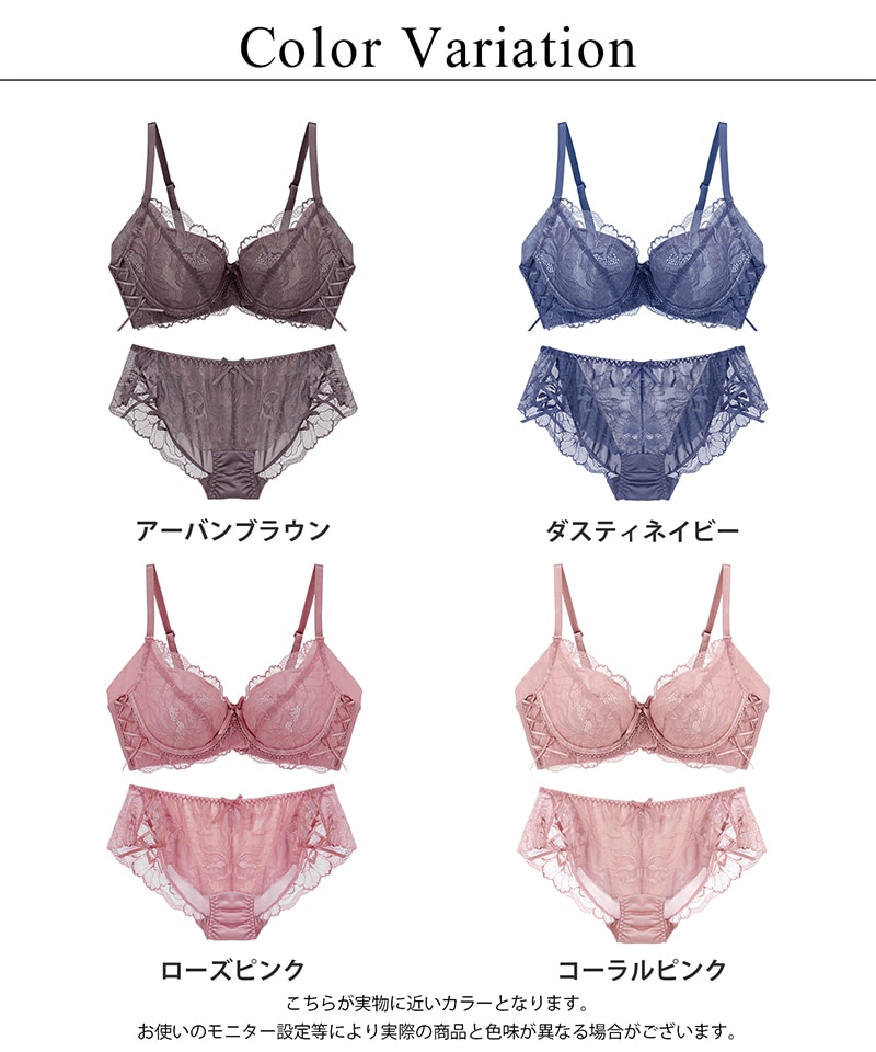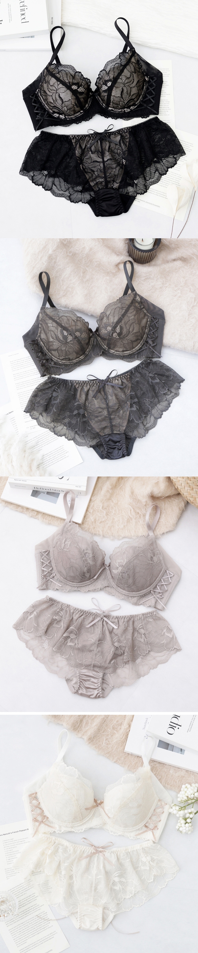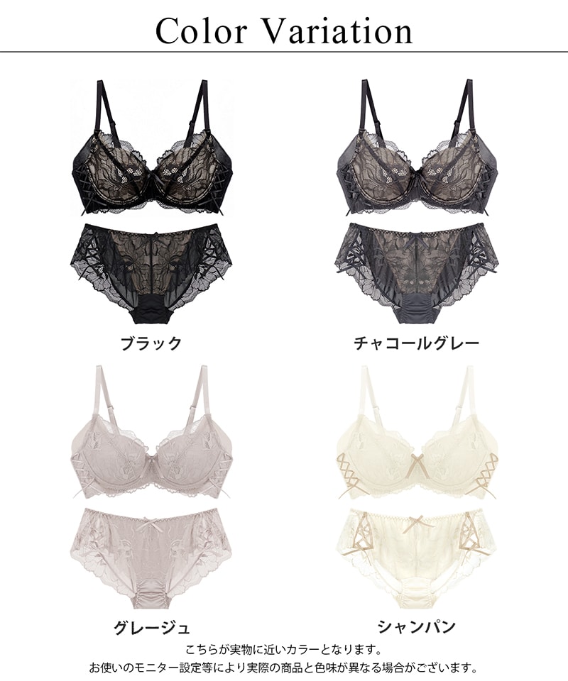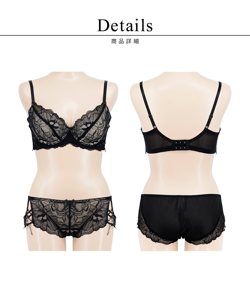 《Bra Jelly》ピオニーレースアップブラ&ショーツ【上下セット】【tu-hacci】 A75/ショーツM チャコールグレー/Bタイプ