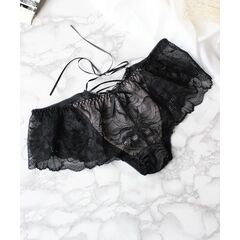 《Bra Jelly》ピオニーレースアップブラ&ショーツ【上下セット】【tu-hacci】 D65/ショーツM チャコールグレー/Bタイプ
