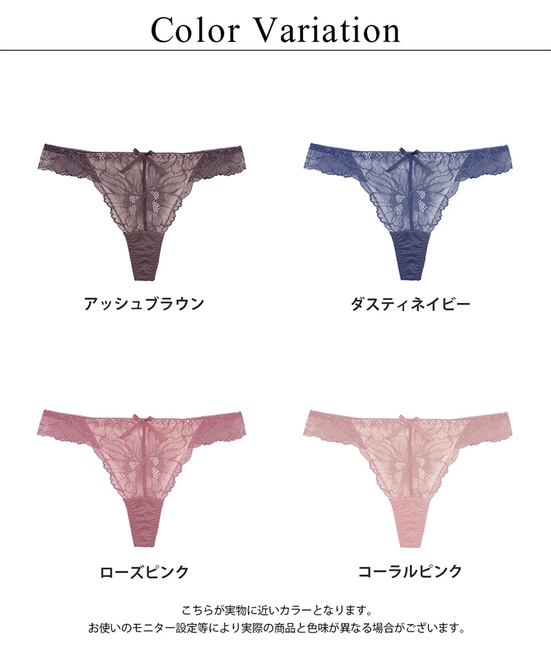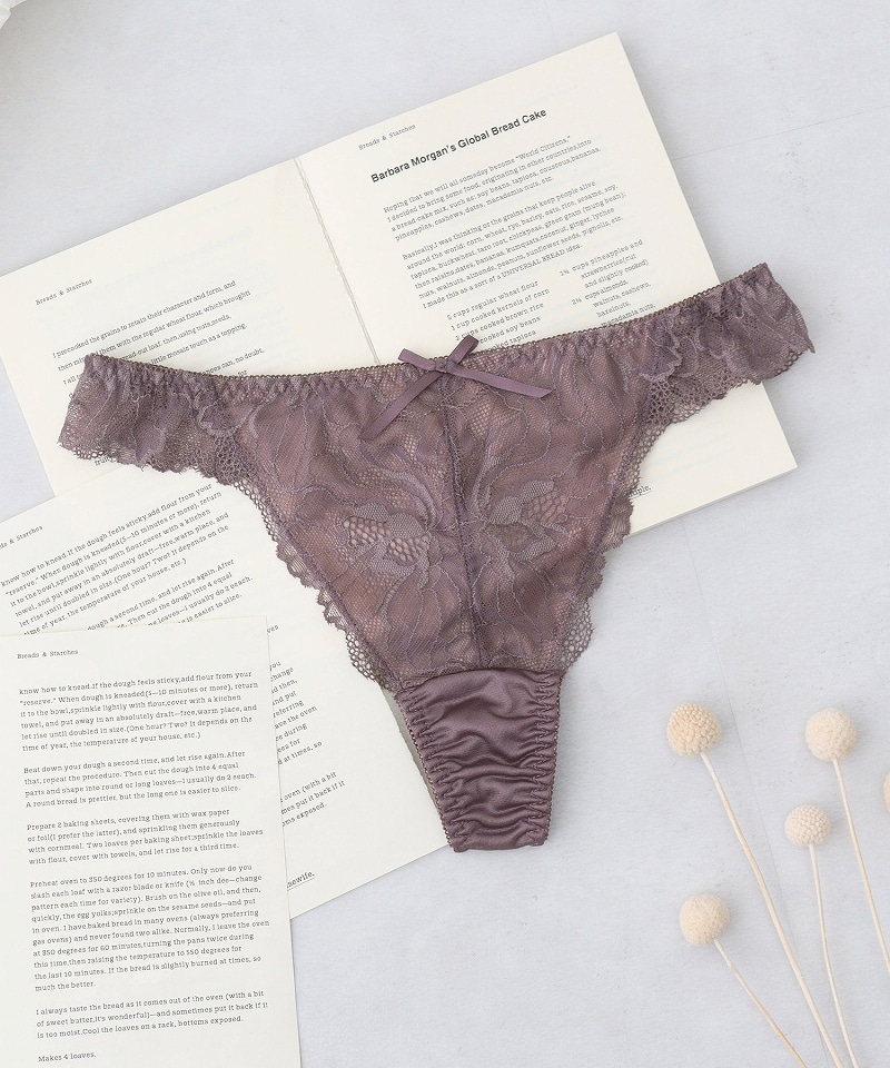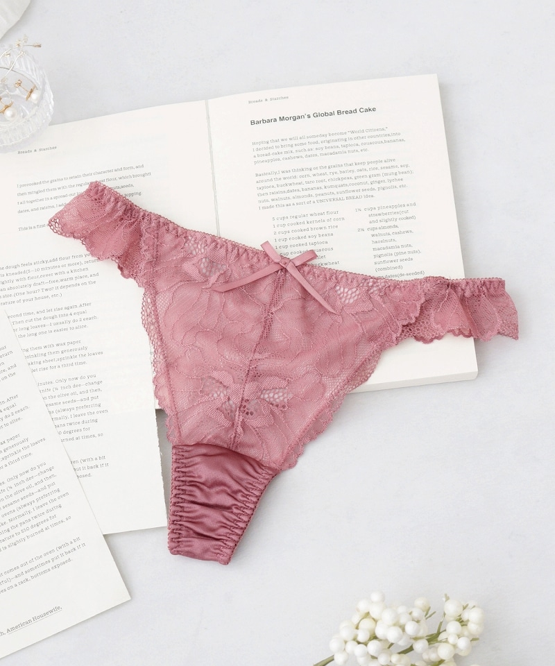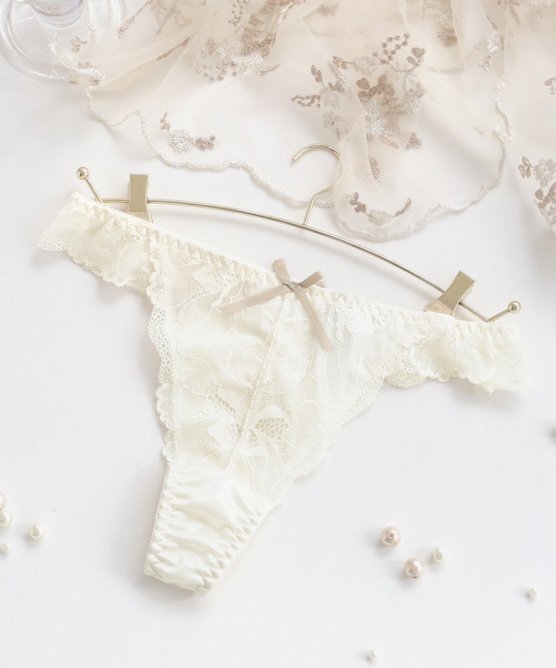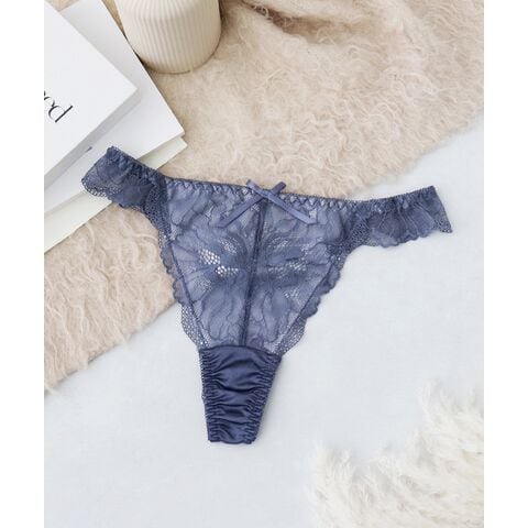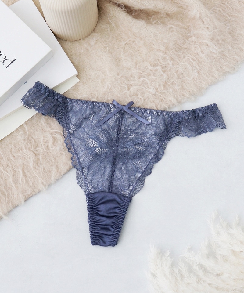 《Bra Jelly》ピオニーレースフリルTバックショーツ【ショーツ単品】【tu-hacci】 M ダスティネイビー
