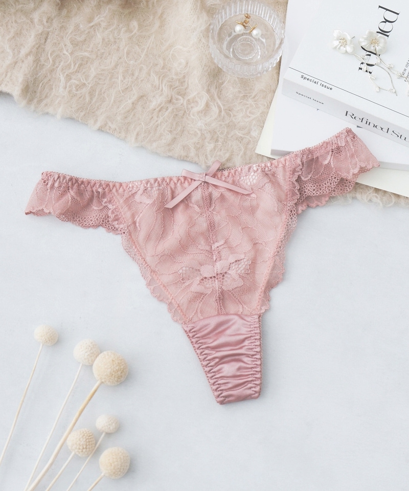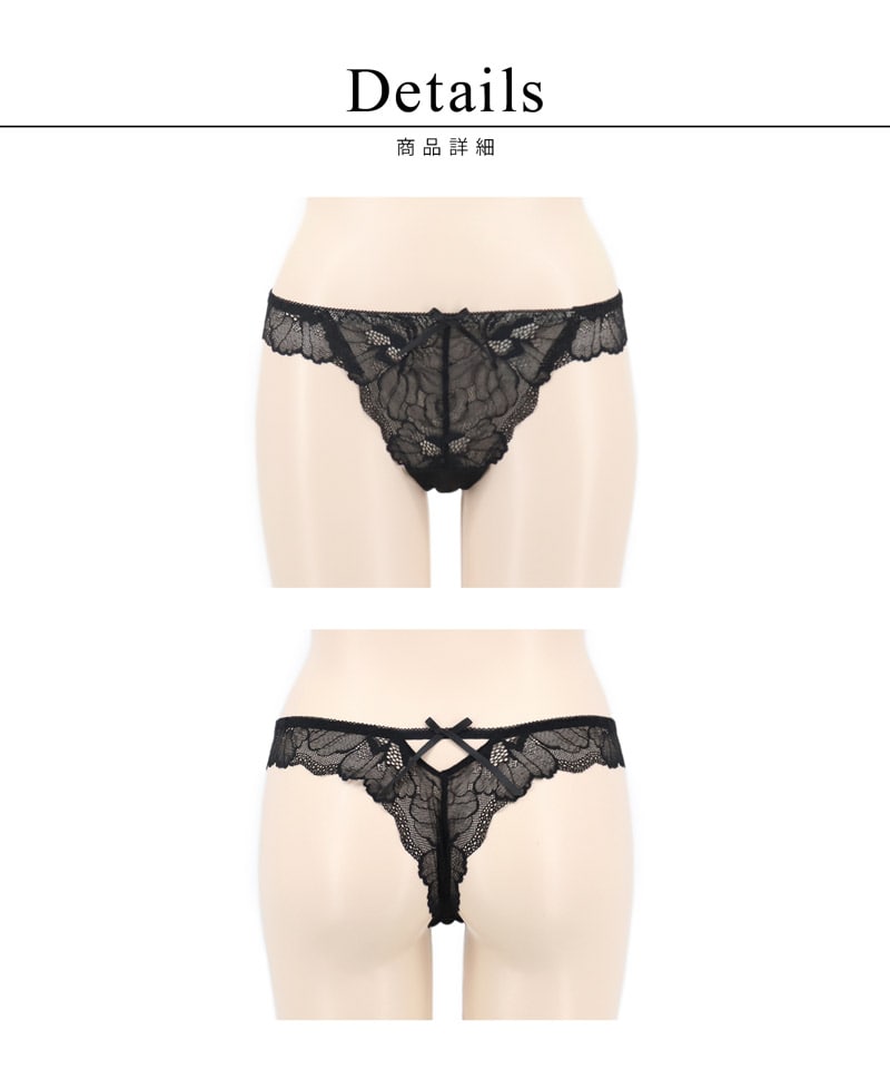 tu-hacci Sexy Shorts Collection Tバックショーツ単品 凛と咲き誇る芍薬をモチーフにしたストレッチレースをたっぷりと。 全体を通して華やかな透け感を楽しめる一着。 バックスタイルはTバックデザインにリボンでアクセントをプラス。 ボトムにラインが響きにくいのもうれしいポイント。 |