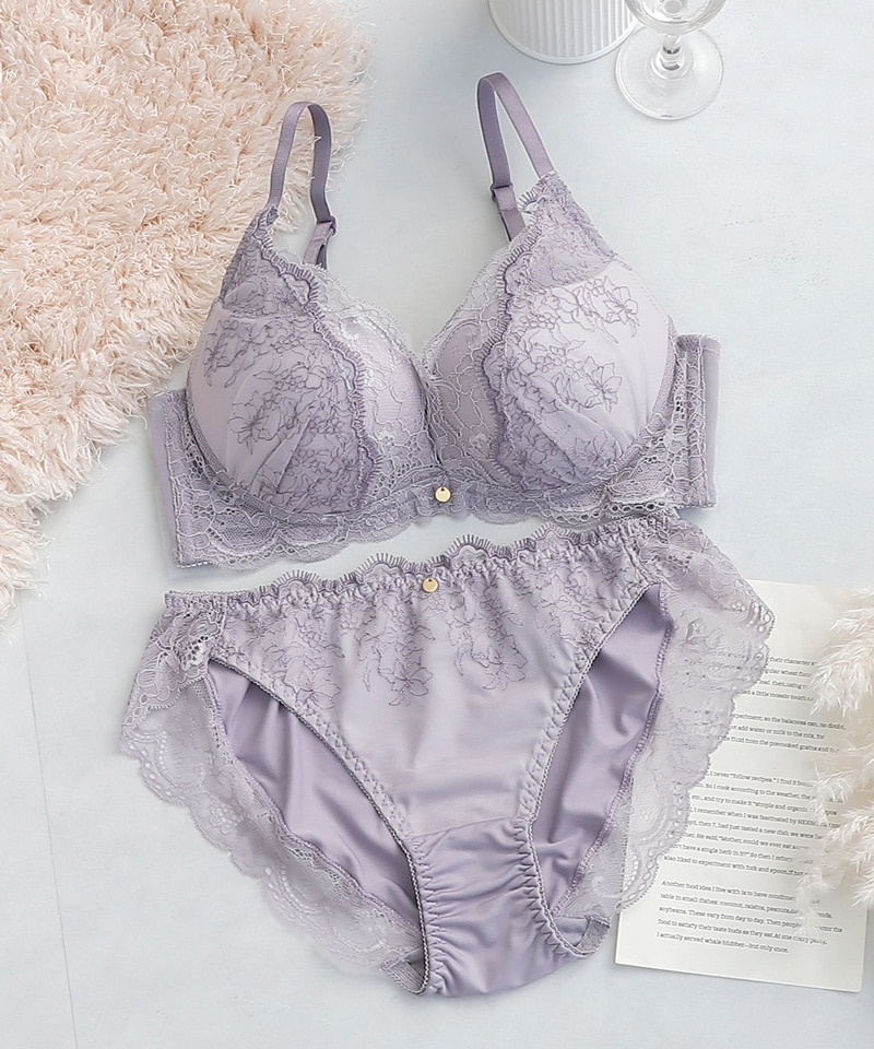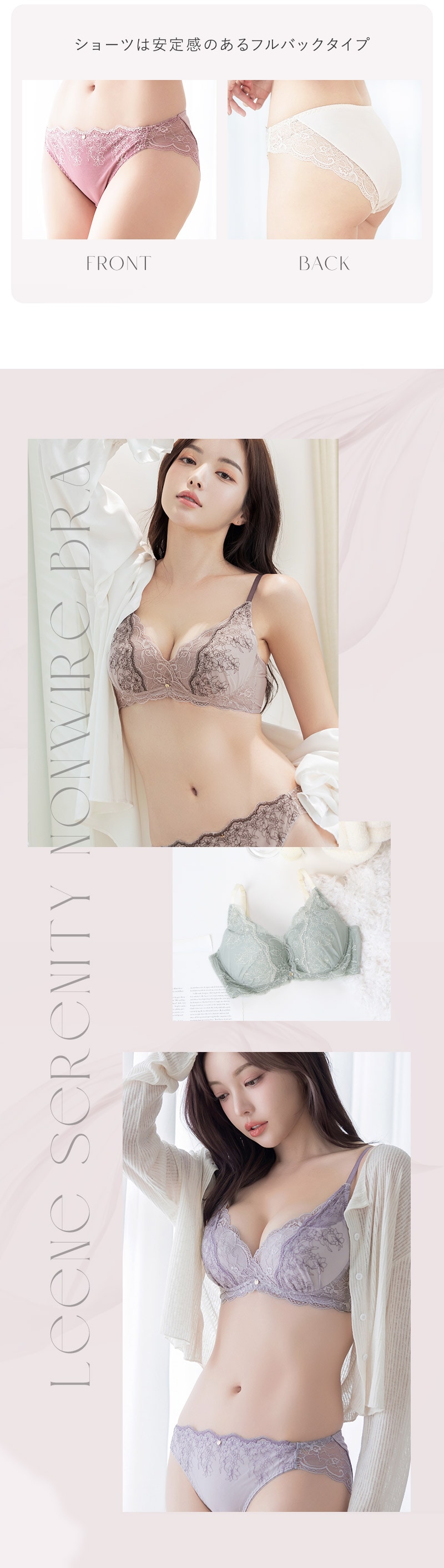 痛くない脇高谷間ブラ~Leeneシリーズ~ セレニティノンワイヤーブラ&ショーツ【上下セット】【tu-hacci】 A70/ショーツM ラベンダーグレー