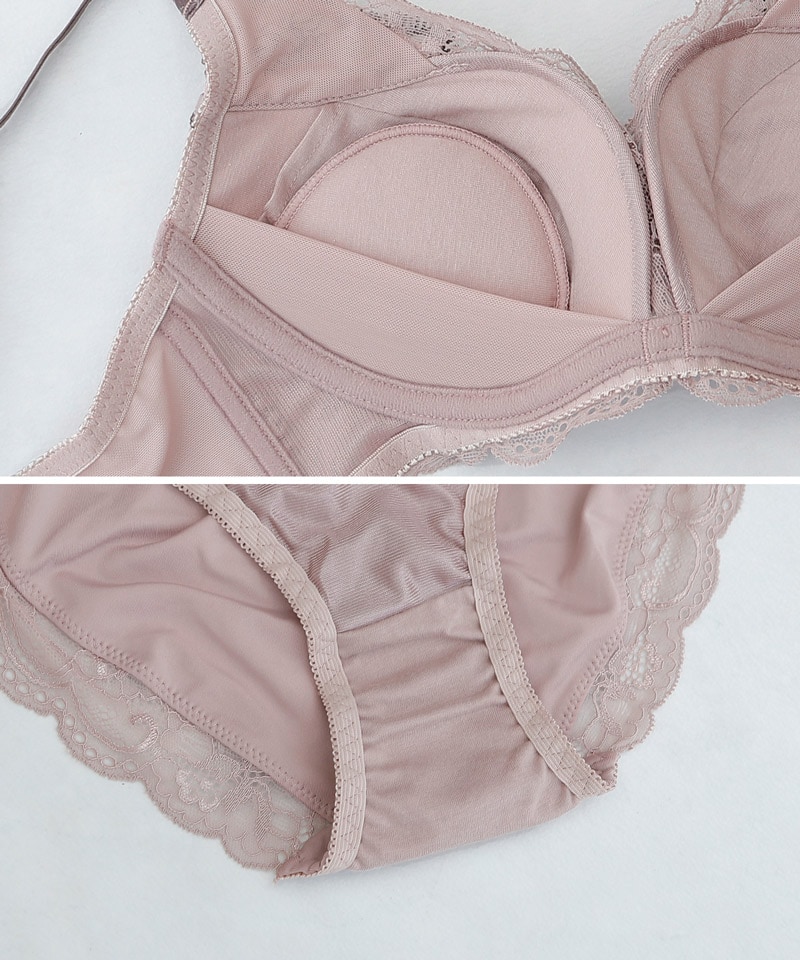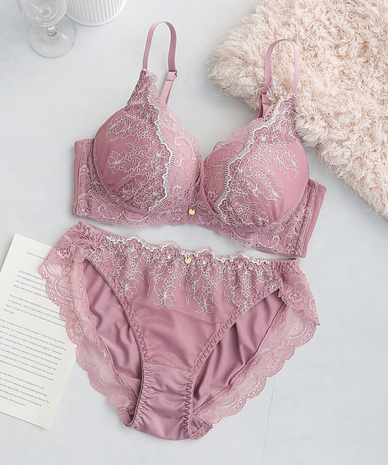 痛くない脇高谷間ブラ~Leeneシリーズ~ セレニティノンワイヤーブラ&ショーツ【上下セット】【tu-hacci】【グラマーサイズ】【グラマーサイズ】 G70/ショーツL ダスティピンク