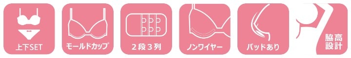 引き上げ効果が持続し、集めた脇肉をセンターへ導きながら自然で綺麗な谷間をメイクします。