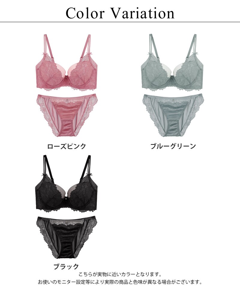 《vivante》レイシアブラ&ショーツ グラマーサイズ 【上下セット】【tu-hacci】 E65 ブラック