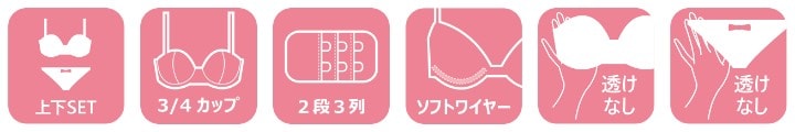 ストラップ取り外し:不可 ストラップ長さ調節:可 パッド:あり パッド取り外し:可 ワイヤー:あり ホック:2段3列 |