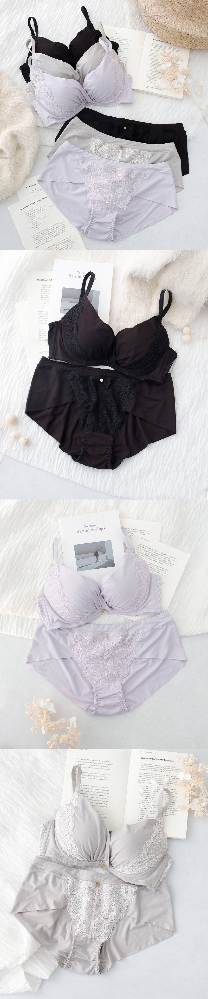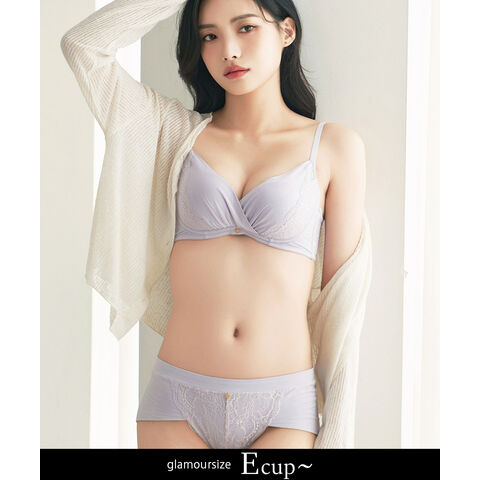 《Leene》シルキーヴェールブラ&ショーツ【上下セット】【グラマーサイズ】【tu-hacci】 E65/ショーツM ラベンダー