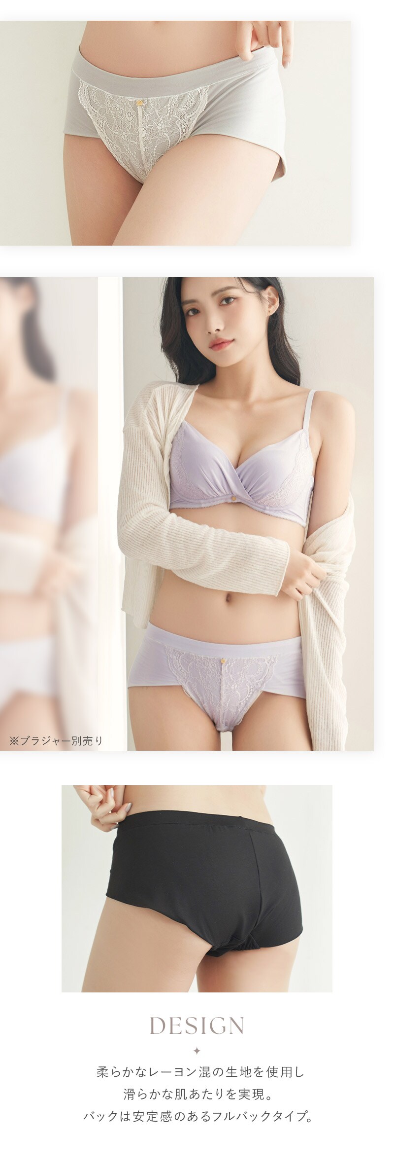 tu-hacci Shorts Collection ショーツ単品 痛くない脇高谷間ブラ ~Leene(リーネ)シリーズ~ シルクのように上品ななめらかさで、毎日にときめきを添える シルキーヴェールショーツ 天然由来のレーヨン混生地で、柔らかくなめらかな履き心地のフルバックショーツ。 フロントには繊細なレースとゴールドプレートを添え、上品で女性らしい印象に。 バックはシンプルな仕様で、服に響きにくいライン設計。 足口は鼠径部を締め付けないリンパゆったり型。 ストレスフリーな履き心地は、Vラインの黒ずみ対策にもおすすめ。 毎日を、もっと軽やかに、美しく。 |