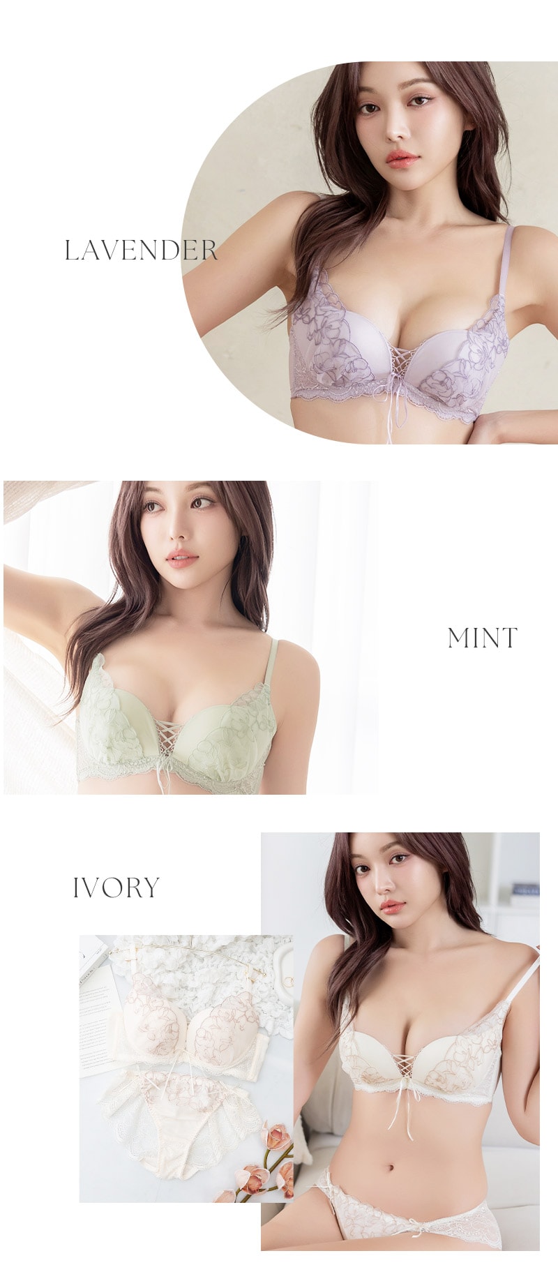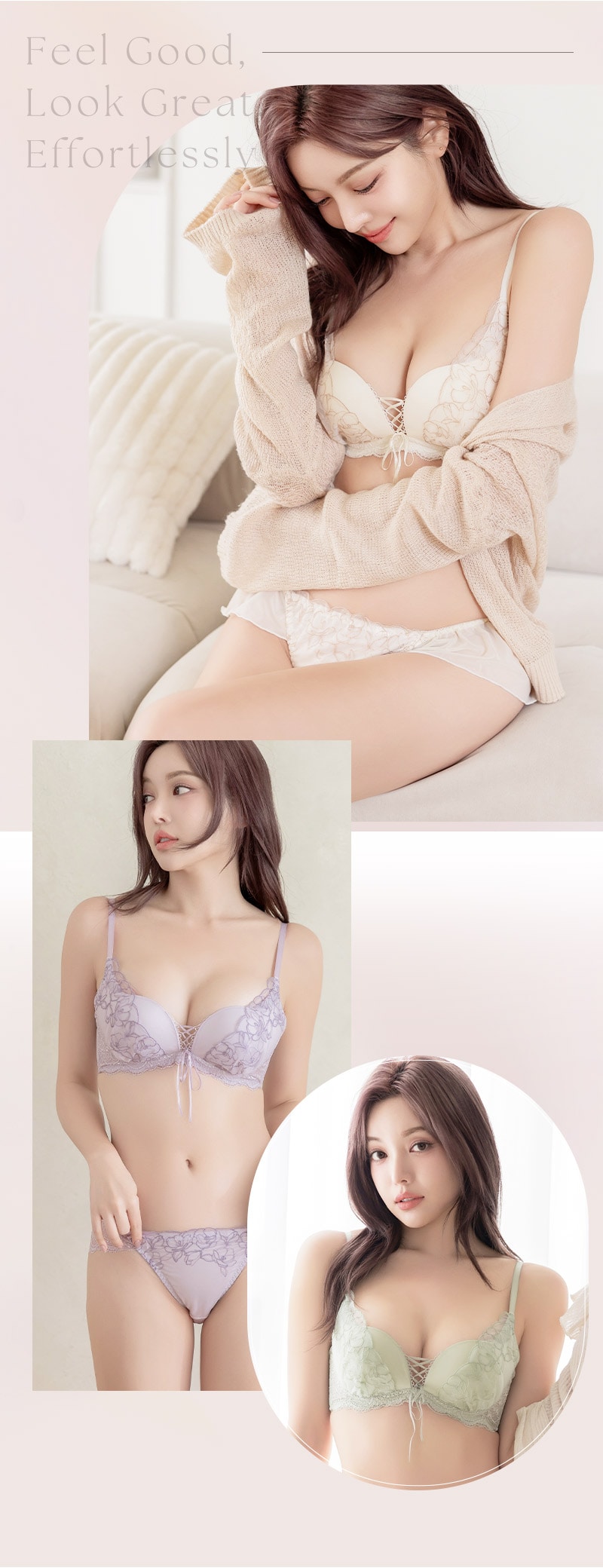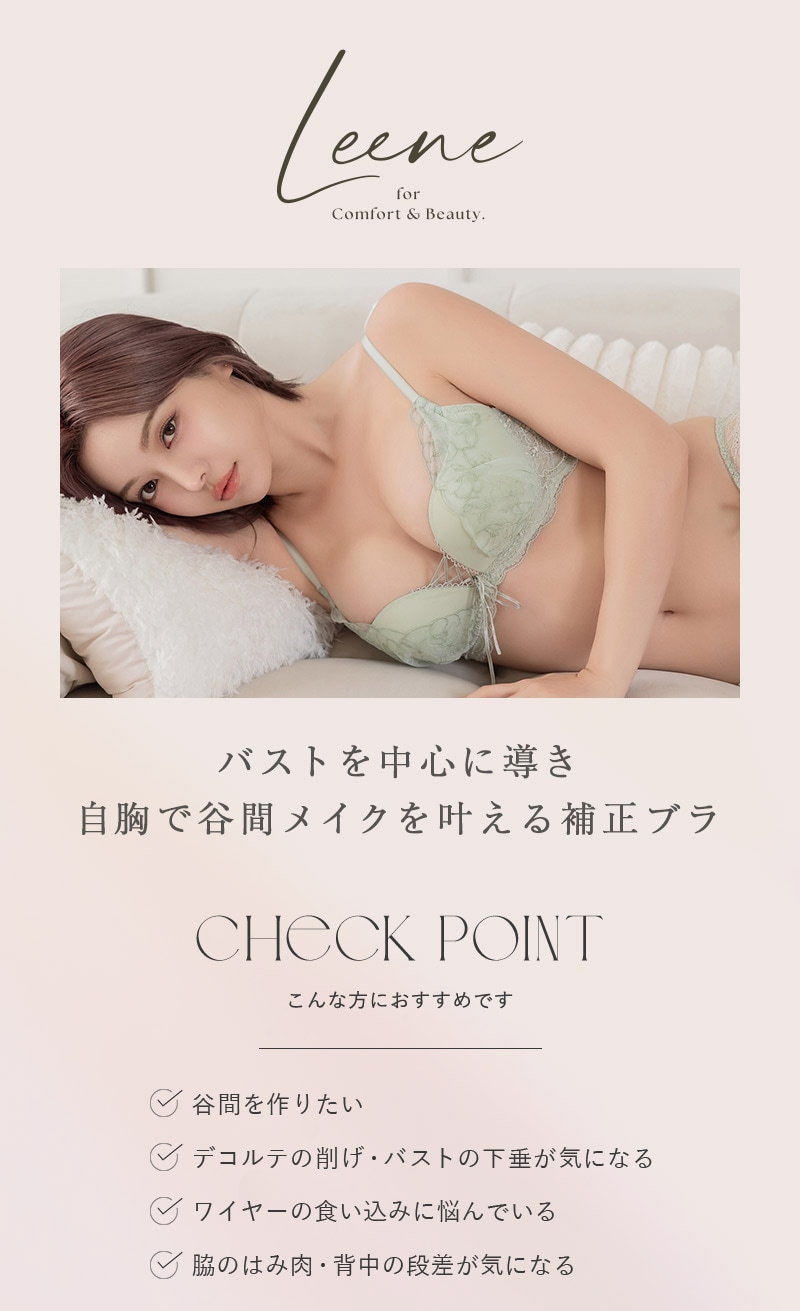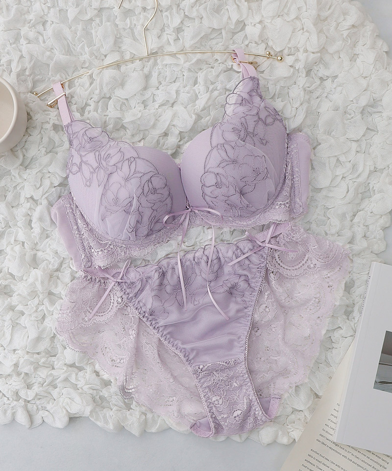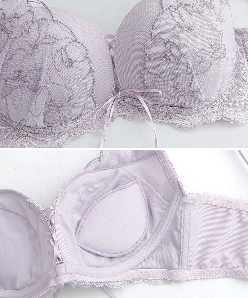 tu-hacci Bra&Shorts Collection ブラ&ショーツ / 計2点セット 痛くない脇高谷間ブラ ~Leene(リーネ)シリーズ~ 脇高設計でシルエットを整えつつ、ストレスフリーな谷間メイクを叶える補正ブラ。 マグノリアをイメージした繊細な刺繍レースが織りなすのは、花々が咲きこぼれる上品でロマンティックな胸元。 フロントのレースアップをアクセントに添えて。 ■「らくちんホールド」L字ワイヤー 一般的なU字ワイヤーと比べて前中心が低く、食い込まないから痛くない。 左右からバストを寄せつつ安定感があり、長時間の着用でもストレスフリー。 ■「魅力的なI字型の谷間」バストを中心に引き寄せるレースアップデザイン カップ裏には、バストを引き上げる伸びにくい生地を採用。 引き上げ効果が持続し、集めた脇肉をセンターへ導きながら自然で綺麗な谷間をメイクします。 加齢によるそげ胸にお悩みの方にもおすすめ。 ■「ムダ肉を逃さずキャッチ」脇高設計&U字バック 脇高ボーンと幅広のサイドベルトが、気になる脇肉や背中の段差をすっきりフラット化。 ■好みの谷間に調整可能 フロントのレースアップは手結び仕様。 お好きな高さまでリボンを通して好みの谷間に調整できます。 ■ショーツが選べる2種類の組み合わせ セットショーツはお好みのタイプをお選びいただけます。 ・Aタイプ…チュールフレアショーツ ・Bタイプ…レースバックショーツ |