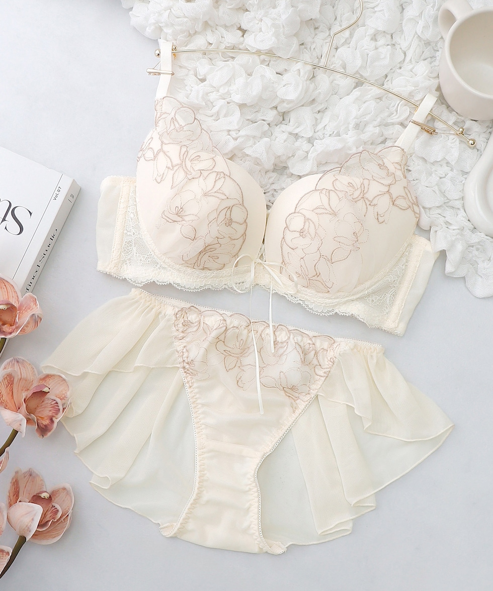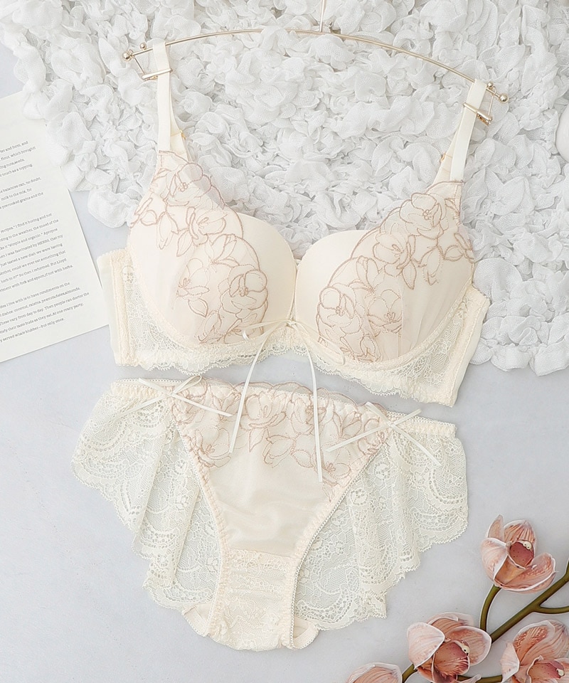 《Leene》マニョリアレースブラ【上下セット】【tu-hacci】 A75/ショーツM アイボリー/Aタイプ