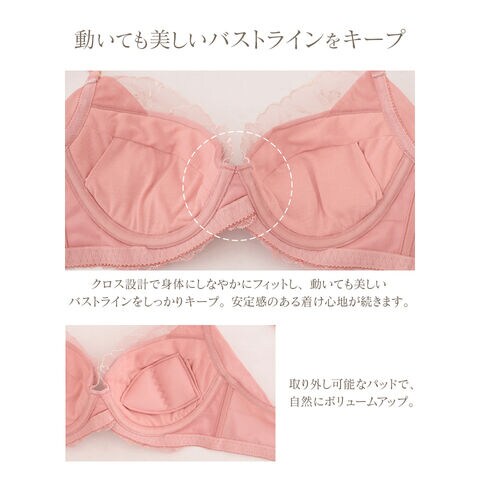 ストラップ取り外し:不可 ストラップ長さ調節:可 パッド:あり パッド取り外し:可 ワイヤー:あり ホック:2段3列 |