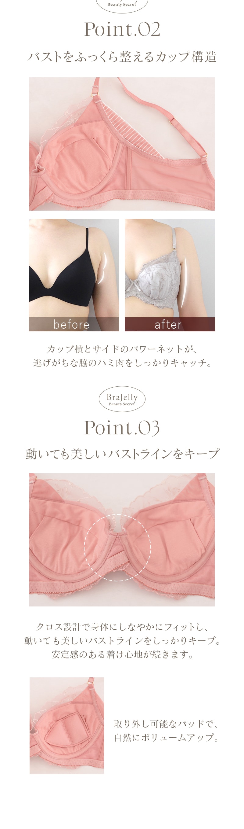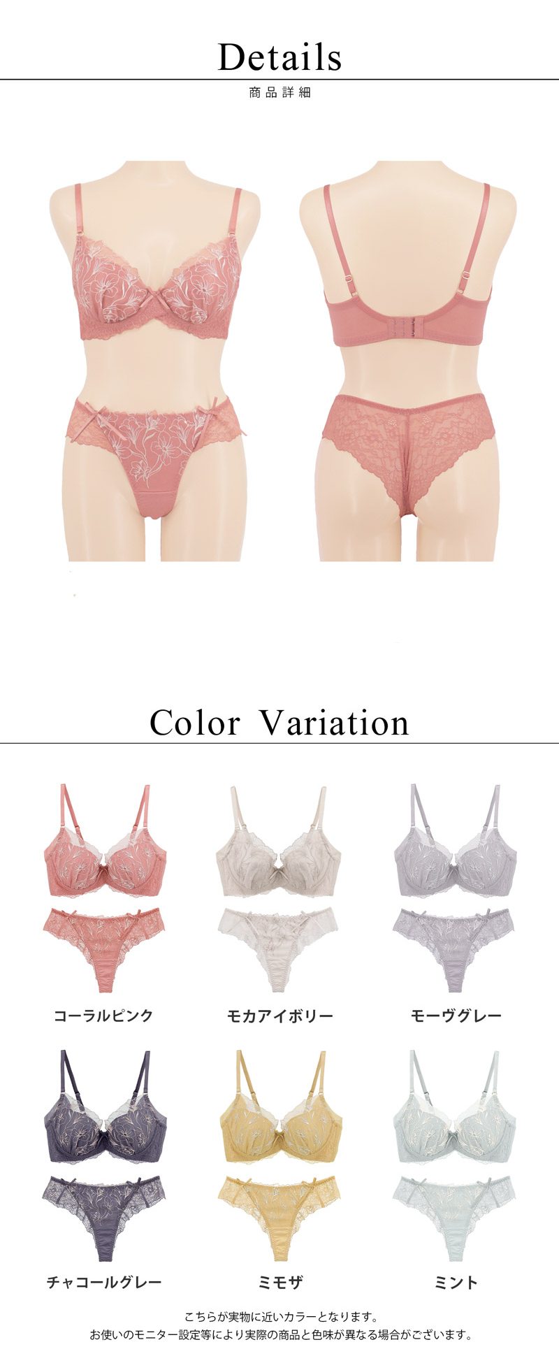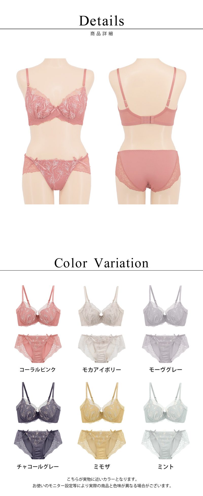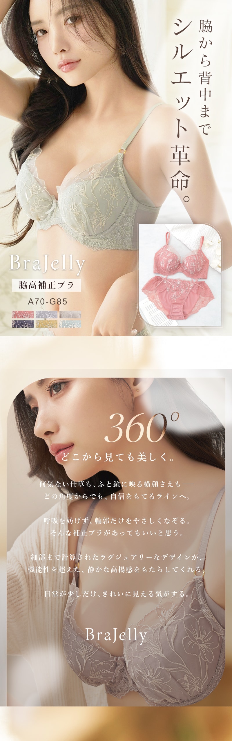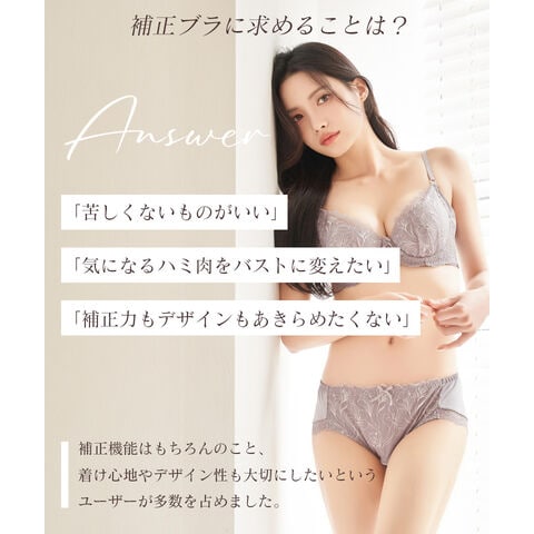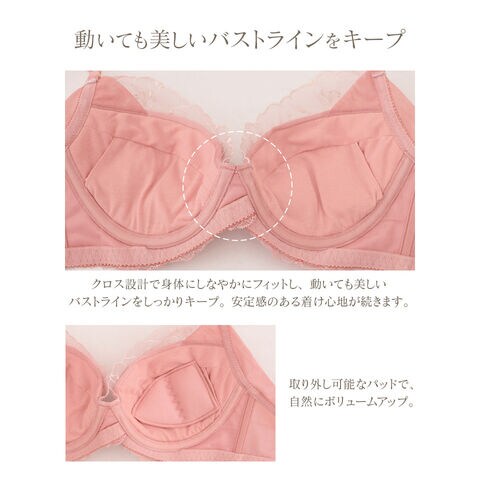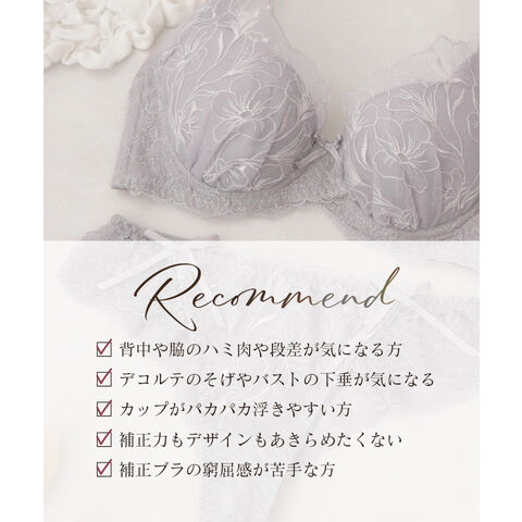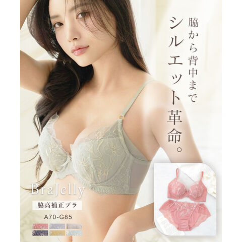 tu-hacci Bra&Shorts Collection ブラ&ショーツ / 計2点セット 補正ブラに見えない脇肉撃退ブラ~Bra Jelly(ブラジェリー)シリーズ~ オリジナル刺繍がカップを華やかに彩る 《Bra Jelly》シャンテレースブラ&ショーツ ボディの持つ美しさを最大限に引き出し、自信をもたらすランジェリー。 細部までこだわり抜いた贅沢デザインに、美補正機能を限りなく詰め込んで。 着けるたびバストも気持ちも花開く。 年齢を重ねるごと、毎日をプレイフルに楽しみたい女性へ贈る 補正下着に見えない補正ブラシリーズです。 【こんな方におすすめ】 ・背中や脇のハミ肉や段差が気になる方 ・デコルテのそげやバストの下垂が気になる ・カップがパカパカ浮きやすい方 ・補正力もデザインもあきらめたくない ・補正ブラの窮屈感が苦手な方 オリジナルのフラワー刺繍で、全体を華やかにドレスアップ。 ヌーディな下地に芳しい花々が浮かび上がる、グラマラスな一着。 ■バスト丸ごとカップイン。高さのある華やぎバストをメイク 立体三枚ハギ構造でバストを潰さずふっくらリフトアップ。 パッド付きでボリューム調整可能。 ■幅広い体型に寄り添う設計 前中心クロスでずれにくく、しっかりバストにフィット。 華奢見えも◎ ■ムダ肉を逃さずキャッチ。脇高設計&パワーネット 幅広のバックベルトは背中の段差ができにくい仕様。 カップ脇のパワーネットとカバーパーツが、流れがちな脇のぷよ肉まで残さずブロック。 ■ショーツは選べる2タイプ ・フルバックショーツ ・レースTバックショーツ |