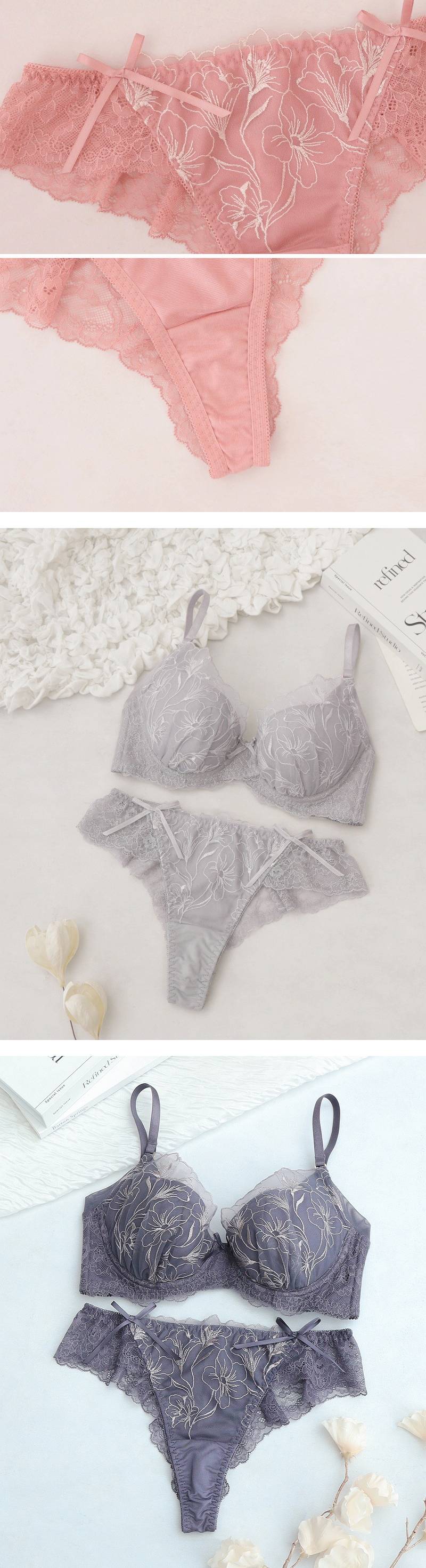 《Bra Jelly》シャンテレースブラ&ショーツ【グラマーサイズ】【上下セット】【tu-hacci】 F75/ショーツL チャコールグレー/Bタイプ