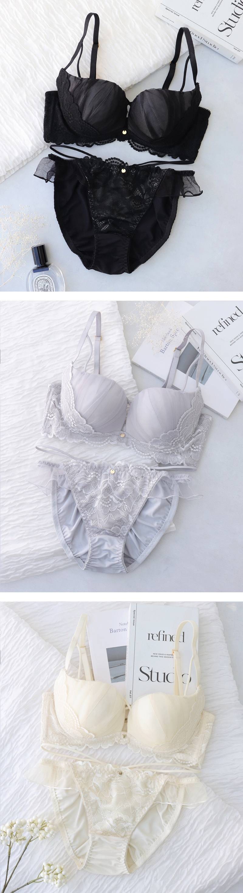 《Leene》フルーナブラ&ショーツ【上下セット】【tu-hacci】B75/ショーツL シアーブラック