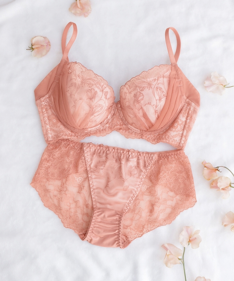 フリリアレースブラ&ショーツ 【グラマーサイズ】【上下セット】【tu-hacci】 G85/ショーツXL コーラル/ノーマルショーツ