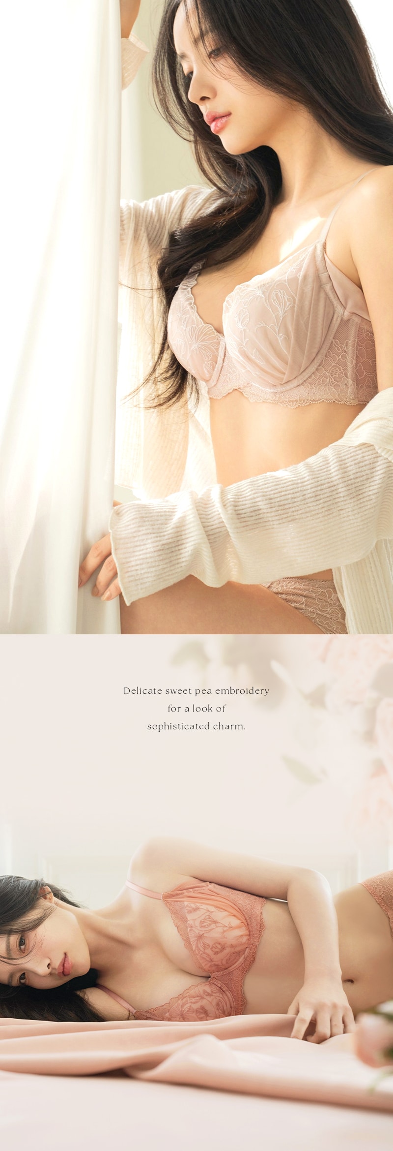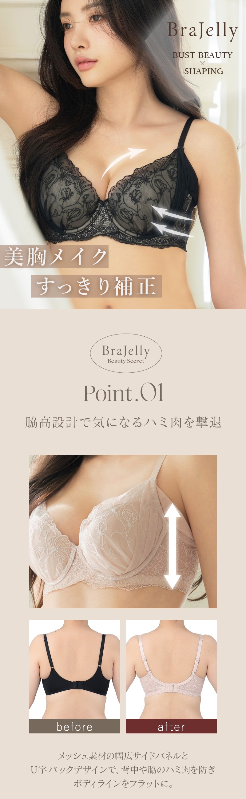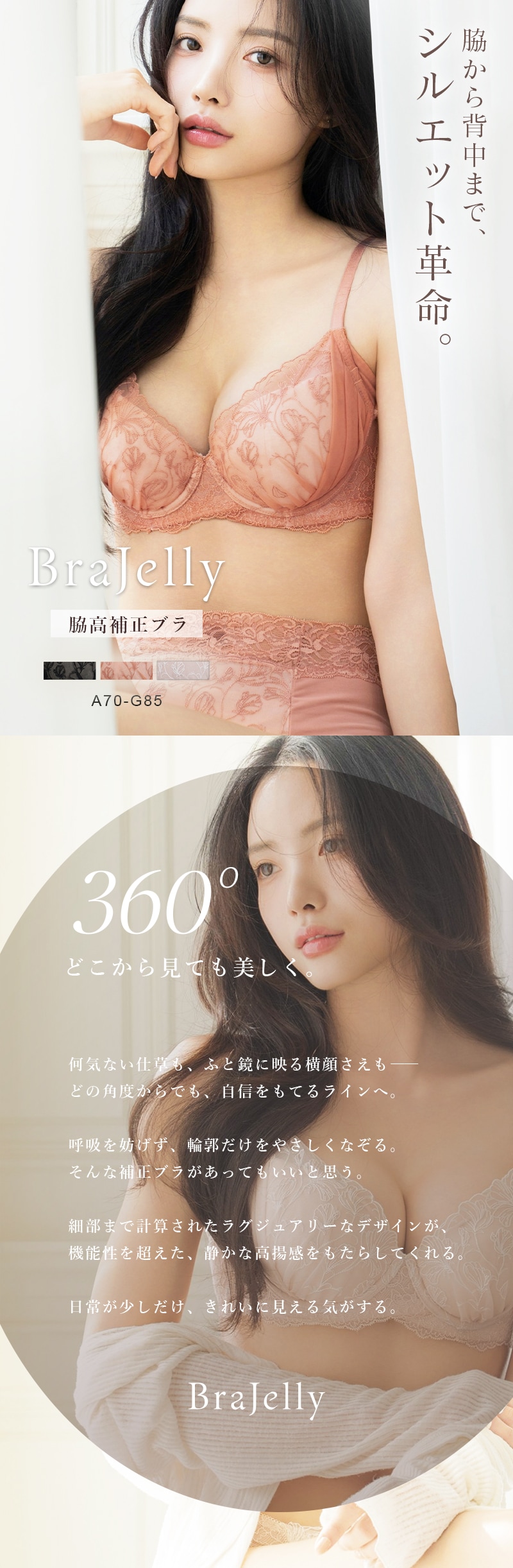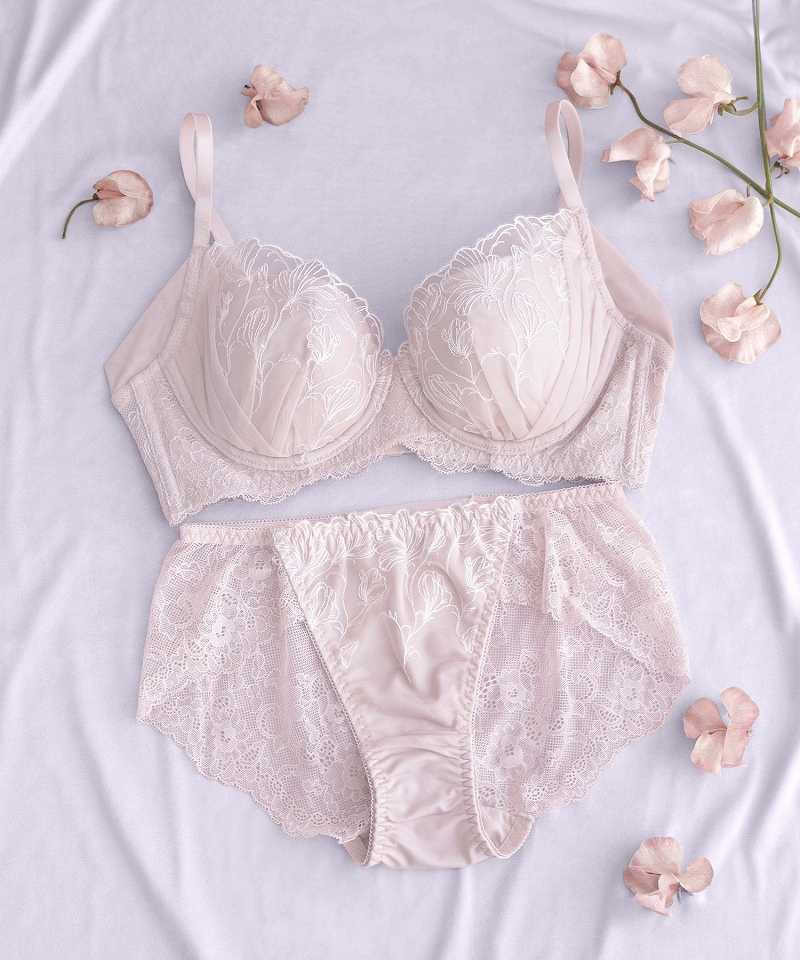 tu-hacci Bra&Shorts Collection ブラ&ショーツ / 計2点セット 補正ブラに見えない脇肉撃退ブラ~BraJelly(ブラジェリー)シリーズ~ スイートピーモチーフがバストに寄り添う 《BraJelly》フリリアレースブラ&ショーツ ボディの持つ美しさを最大限に引き出し、自信をもたらすランジェリー。 細部までこだわり抜いた贅沢デザインに、美補正機能を限りなく詰め込んで。 着けるたびバストも気持ちも花開く。 年齢を重ねるごと、毎日をプレイフルに楽しみたい女性へ贈る 補正下着に見えない補正ブラシリーズです。 【こんな方におすすめ】 ・背中や脇のハミ肉や段差が気になる方 ・デコルテのそげやバストの下垂が気になる ・カップがパカパカ浮きやすい方 ・補正力もデザインもあきらめたくない ・補正ブラの窮屈感が苦手な方 スイートピーの刺繍が、全体を淑やかにドレスアップ。 ヌーディな下地に花々が浮かび上がる、洗練された上品さをまとう一着。 ■バスト丸ごとカップイン。高さのある華やぎバストに 立体三枚ハギ構造でバストを潰さずふっくらリフトアップ。 パッド付きでボリューム調整可能。 ■幅広い体型に寄り添う設計 前中心クロスでずれにくく、しっかりバストにフィット。 華奢見えも◎ ■ムダ肉を逃さずキャッチ。脇高設計&パワーネット 幅広のバックベルトは背中の段差ができにくい仕様。 カップ脇のパワーネットとカバーパーツが、流れがちな脇のぷよ肉まで残さずブロック。 ■お揃い刺繍が気分を高めるショーツ 履き心地がなめらかなレースバックタイプ。 繊細な透け感とバックのクロスリボンがヒップを彩ります。。 |