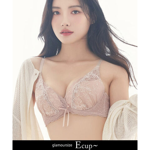 Leene フルールシャワーカシュクール ブラ【グラマーサイズ】 【ブラ単品】 / 痛くない脇高谷間ブラ【tu-hacci】 E75 ピンクベージュ