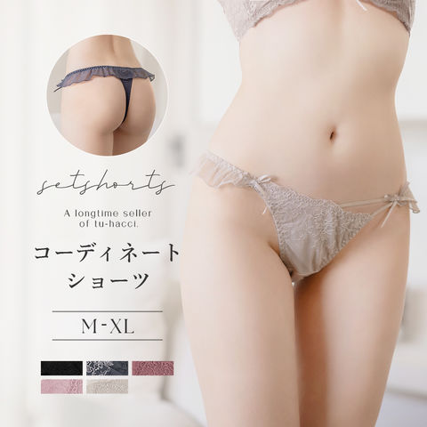 フルールシャワーTバックショーツ ティーバック セクシー ランジェリー パンツ フリル レース コード リボン【ショーツ単品】 XL グレージュ