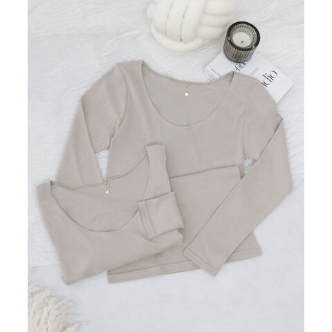コットンインナー 長袖【2枚セット】【tu-hacci】 XL グレージュ×2