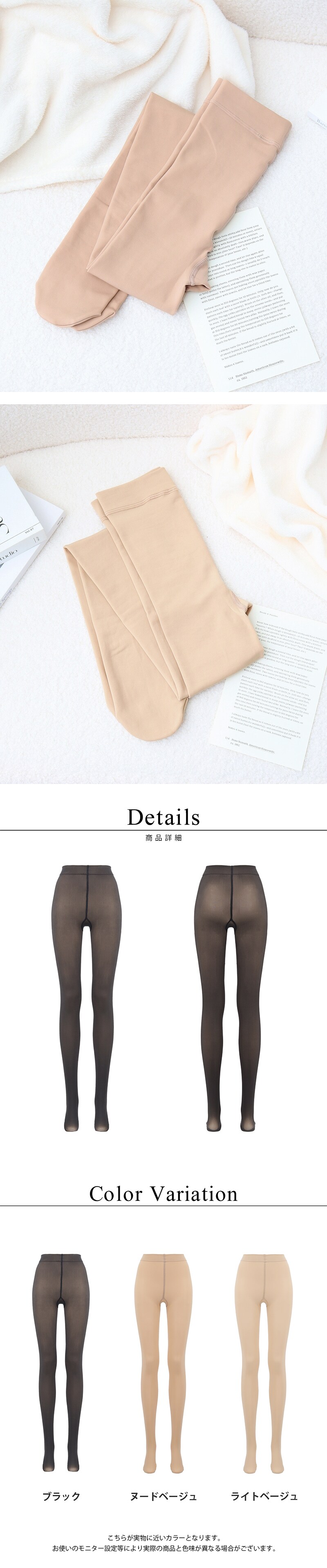 tu-hacci Legwear Collection 裏起毛に見えない、魔法のフェイクタイツ。 素肌感のある軽やかな見た目なのに、 実はしっかり120デニールの極暖仕様。 消臭・抗菌加工で清潔感が続き、 静電気を防いでスカートにまとわりつきにくく、 冬の装いを美しく快適に。 【こんな方におすすめ】 ・冬でも脚見せコーディネートを楽しみたい方 ・素肌感のあるタイツを探している方 ・下半身や足先が冷えやすい方 ■温かさも機能性も大切に ・120デニール+裏起毛の極暖仕様 ・ベージュ色の裏地が透けて、ストッキングを履いているかのような素肌感 ・切り替えなしの設計で足先まで一定の強度をキープ ・マチ付きで食い込みにくい |