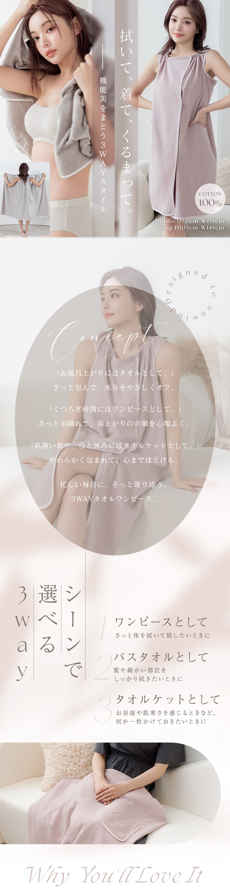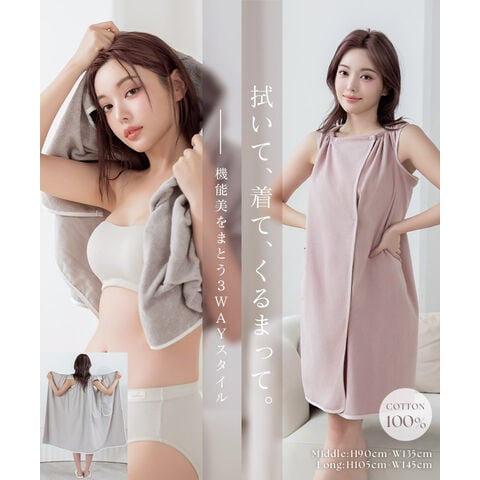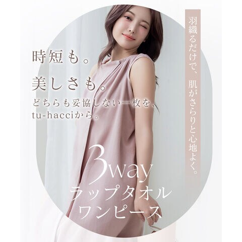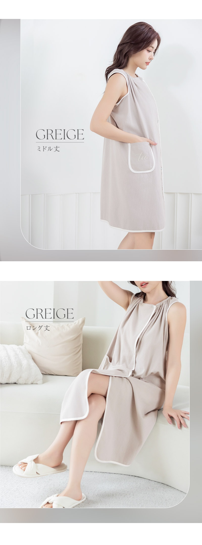 3wayラップタオルワンピース【tu-hacci】 ミドル丈 グレージュ