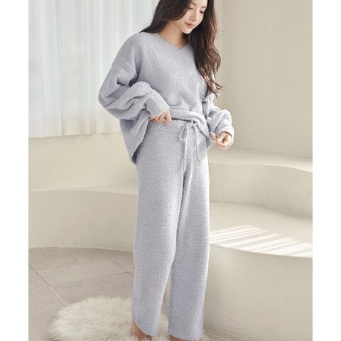 《P.snow》もこもこトップス&パンツ ルームウェア【tu-hacci】F/Vネック/ロングMブルーグレー