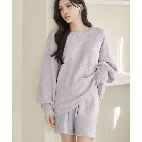 《P.snow》もこもこトップス&パンツ ルームウェア【tu-hacci】F/ボートネック/ショートFラベンダー