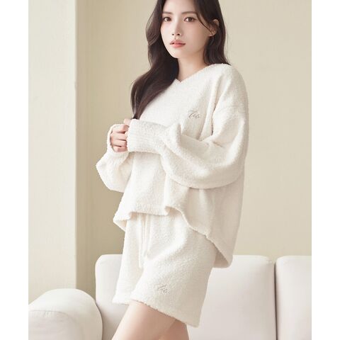 《P.snow》もこもこトップス&パンツ ルームウェア【tu-hacci】F/Vネック/ショートFアイボリー