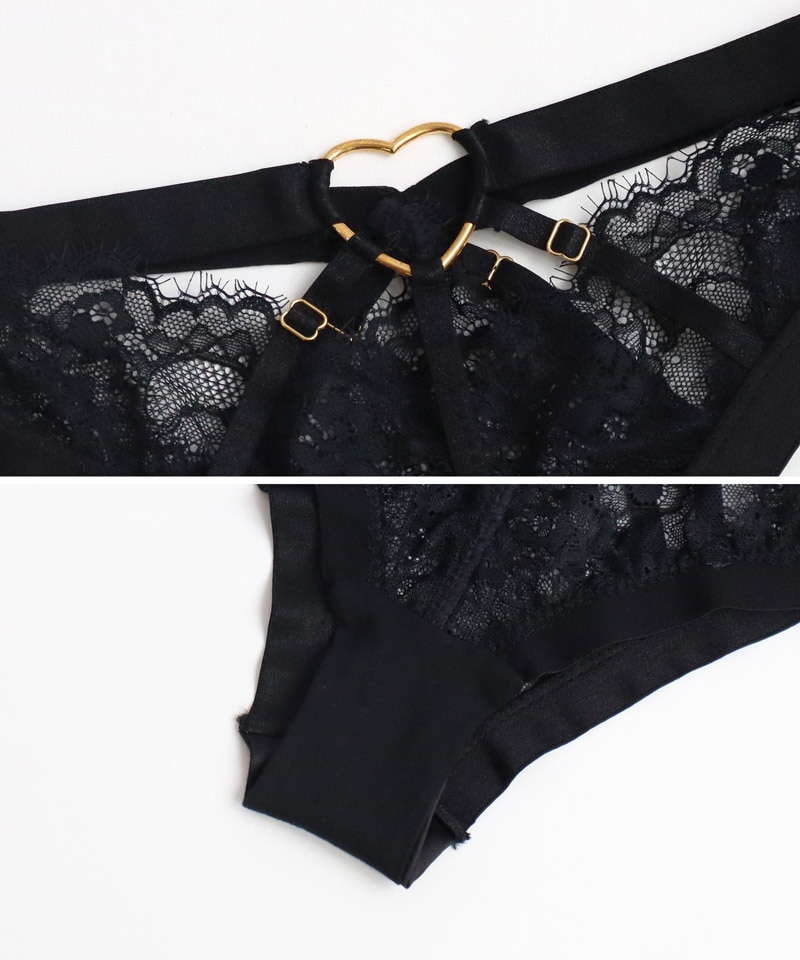 絶妙なコード使いでシャープに仕上げたモードなランジェリー。 ハートのセンターチャームがフェミニンさをプラス。 着るだけで大人の色気を纏い、鼓動が高鳴る。 |