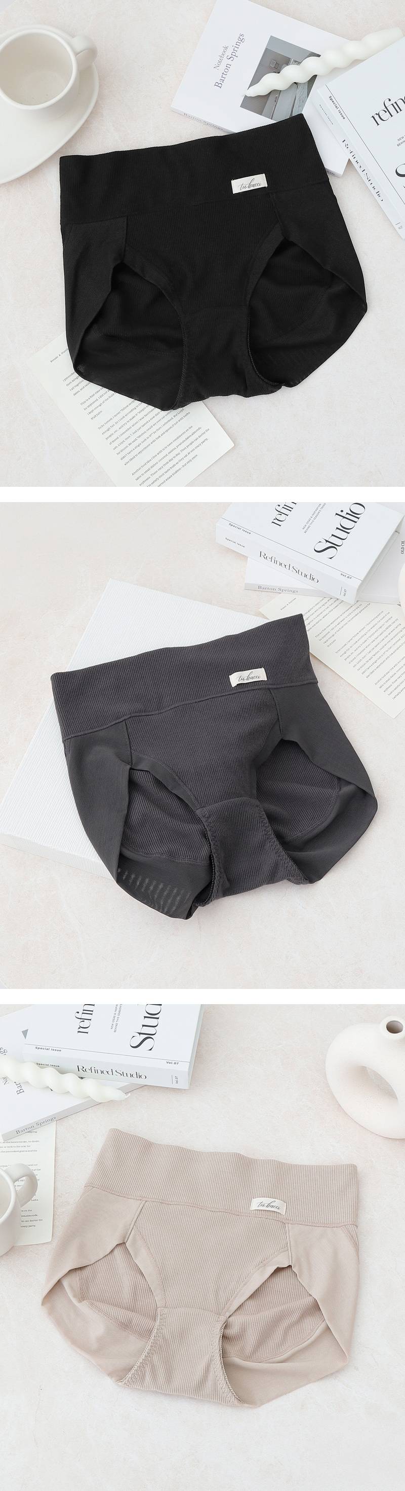リブストレッチ骨盤ガードルショーツ【ショーツ単品】【tu-hacci】 M ブラック/ハイウエスト丈