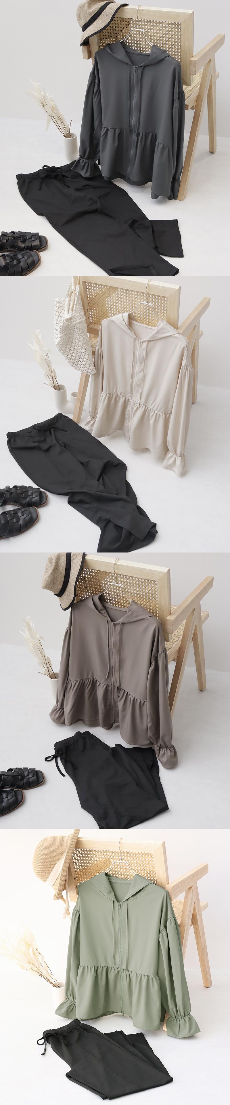 tu-hacci rash guard Collection ラッシュガード&パンツ / 計2点セット 着回ししやすく、様々なシーンで大活躍!華奢見えラッシュガード。 スタイリッシュさと多機能性を兼ね備えた、究極の一着。 フード付きで首の日焼け対策もできるのが嬉しいポイント。 やわらかな素材が快適な着心地を提供し、UVカット機能で肌をしっかりガード。 汗をかいてもサラッと快適な接触冷感で、蒸し暑い季節もより蒸れにくく快適に。 肩落ちシルエットで華奢見えが叶い、袖は手の甲までしっかりカバー。 バックスタイルも計算された絶妙な丈感で、どこから見ても美しいシルエットに。 フロントジップだから、さっと羽織れてメイクや髪も崩れにくく、 上下から開けられるダブルジップで様々な着こなしを楽しめます。 お揃いパンツはセンターライン&スリットで抜け感を出しながらスタイルアップ効果を実現します。 ストレッチ素材とウエストゴムで、様々な体型に心地よくフィット。 スマートフォンがすっぽり収まるサイズのポケット付きで、持ち運びに便利◎ |