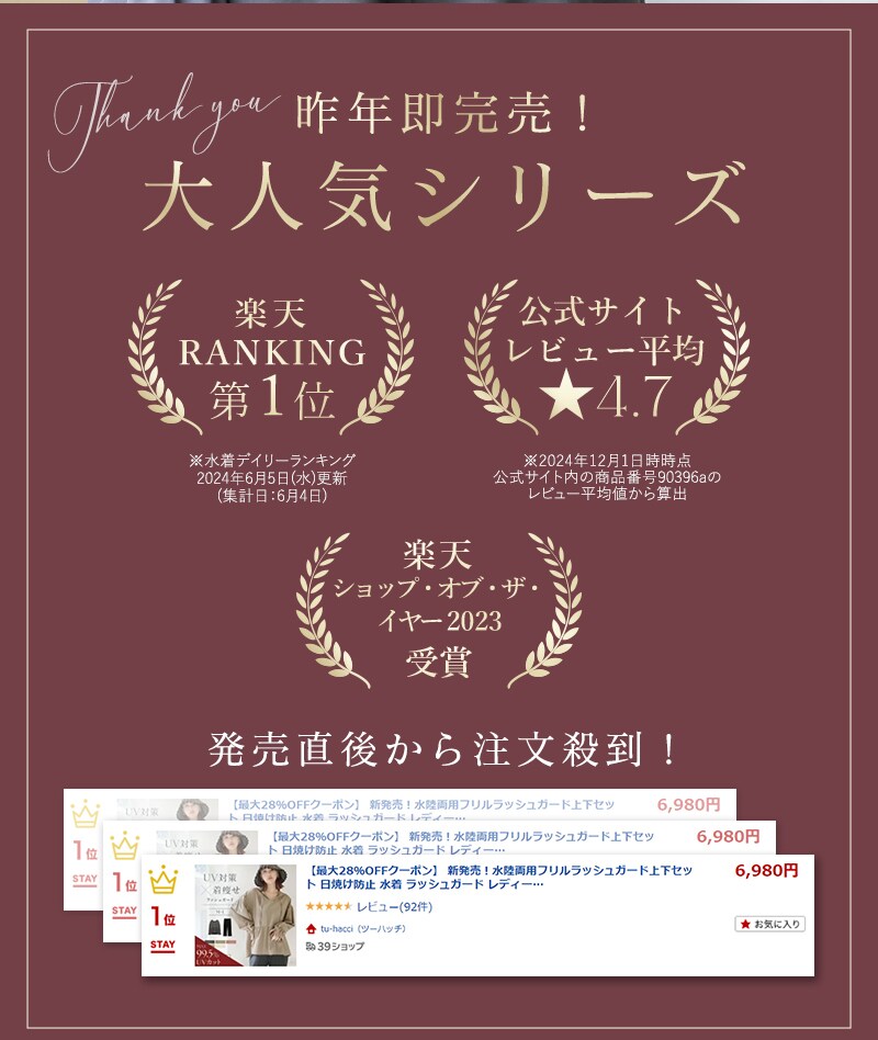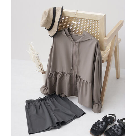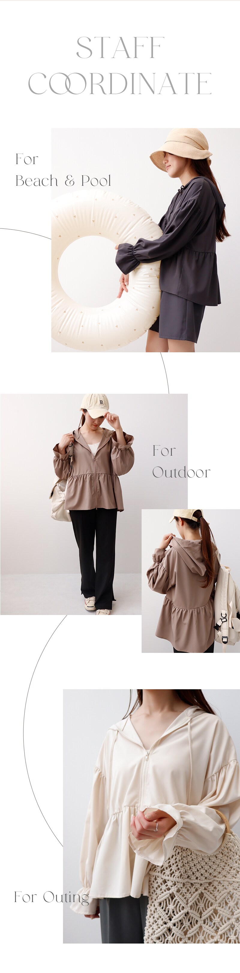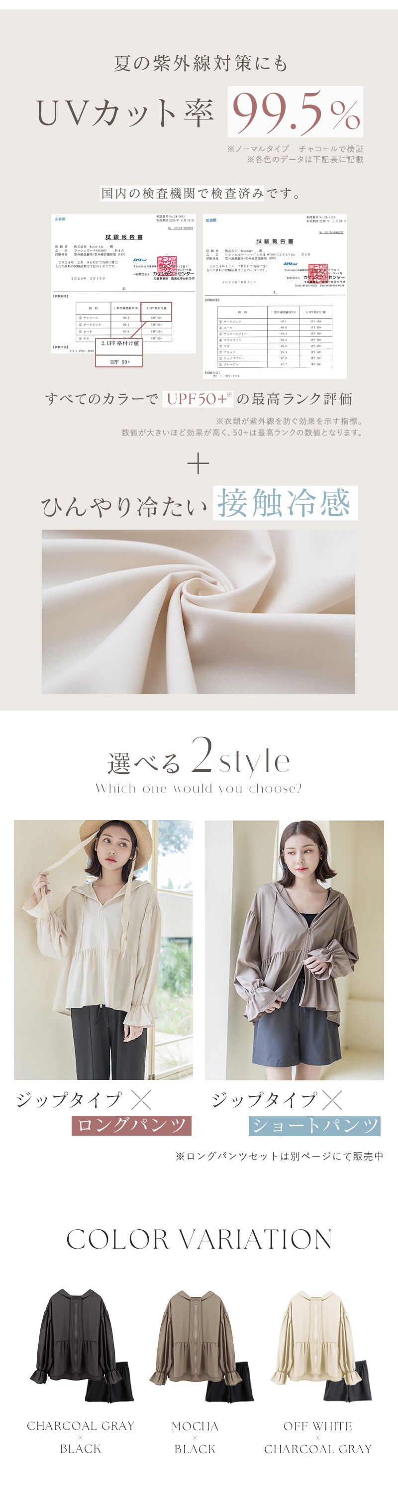 tu-hacci rash guard Collection ラッシュガード&パンツ / 計2点セット 着回ししやすく、様々なシーンで大活躍!華奢見えラッシュガード。 スタイリッシュさと多機能性を兼ね備えた、究極の一着。 フード付きで首の日焼け対策もできるのが嬉しいポイント。 やわらかな素材が快適な着心地を提供し、UVカット機能で肌をしっかりガード。 汗をかいてもサラッと快適な接触冷感で、蒸し暑い季節もより蒸れにくく快適に。 肩落ちシルエットで華奢見えが叶い、袖は手の甲までしっかりカバー。 バックスタイルも計算された絶妙な丈感で、どこから見ても美しいシルエットに。 フロントジップだから、さっと羽織れてメイクや髪も崩れにくく、 上下から開けられるダブルジップで様々な着こなしを楽しめます。 お揃いショートパンツは、涼しくてふんわりとしたシルエットでヒップラインを拾いにくい仕様に。 ウエストはゴム+紐付きで、快適な着心地と脱げにくくて安心のフィット感を実現。 スマートフォンがすっぽり収まるサイズのポケット付きだから、持ち運びにも便利◎ |