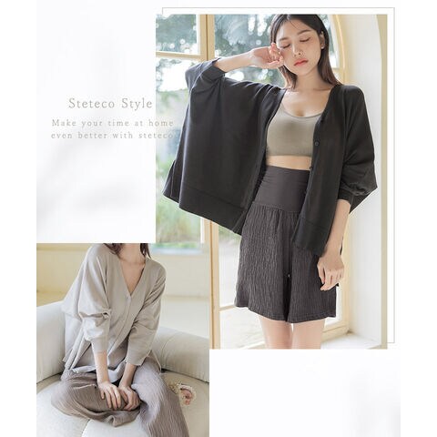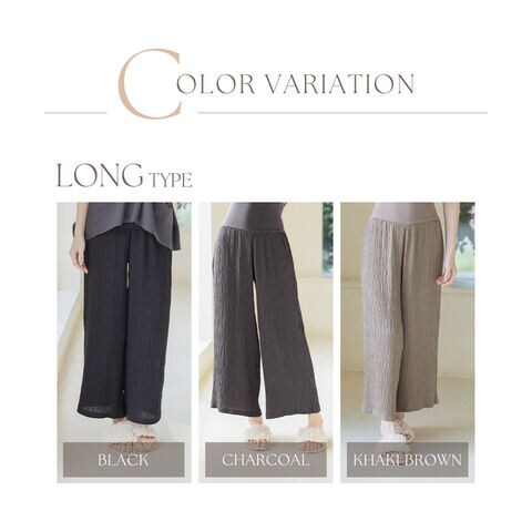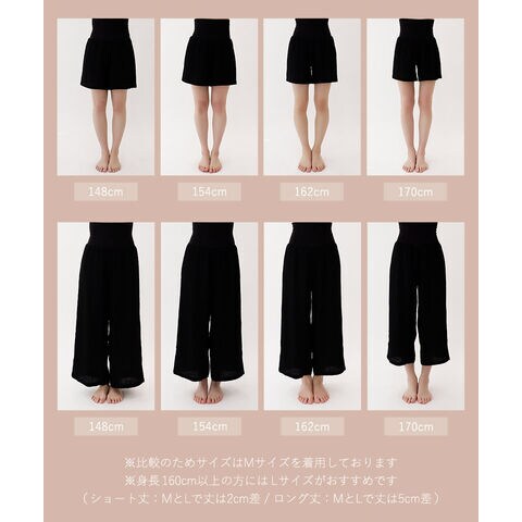 見た目も涼しいショート丈と体型カバーが叶うロング丈は、どちらもリラックスウェアとしてはもちろん、ショートパンツ、ワイドパンツ感覚でちょっとしたお出かけにも◎