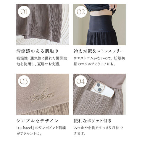 お腹をすっぽり包み込む形状は、マタニティウェアとしてもおすすめ♪