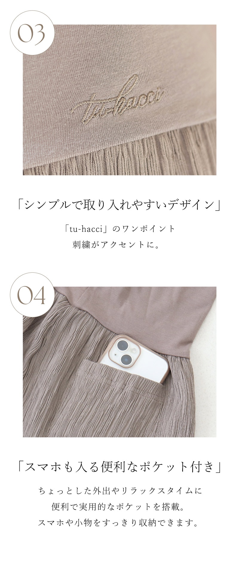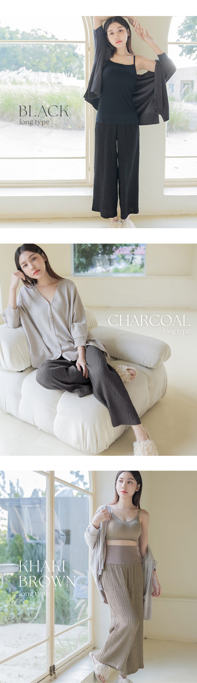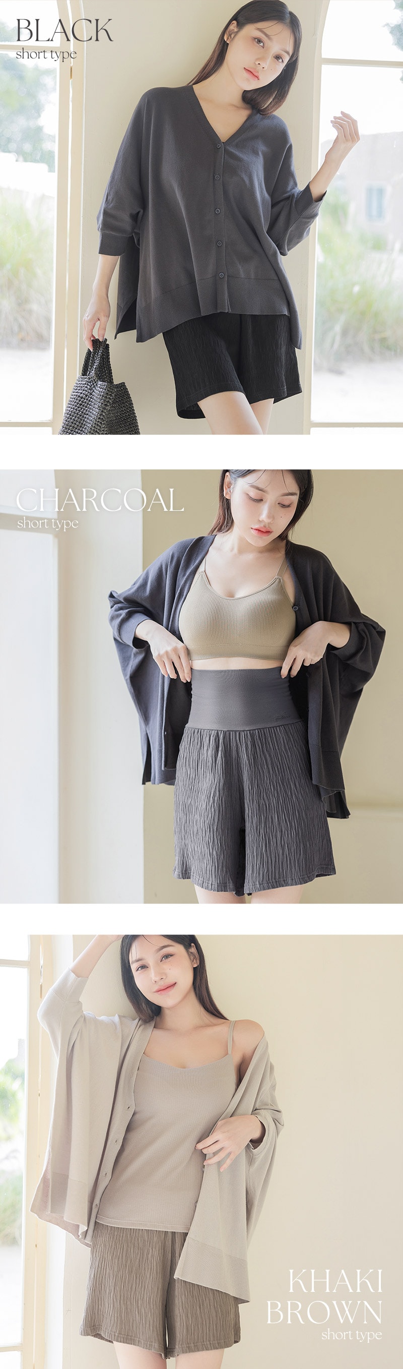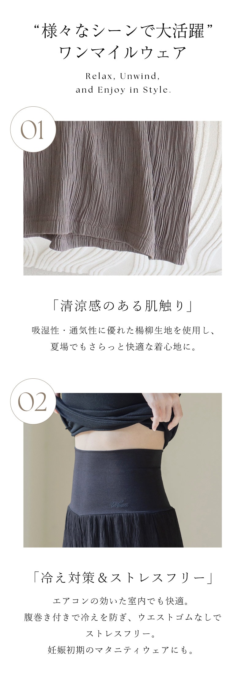 見た目も涼しいショート丈と体型カバーが叶うロング丈は、どちらもリラックスウェアとしてはもちろん、ショートパンツ、ワイドパンツ感覚でちょっとしたお出かけにも◎