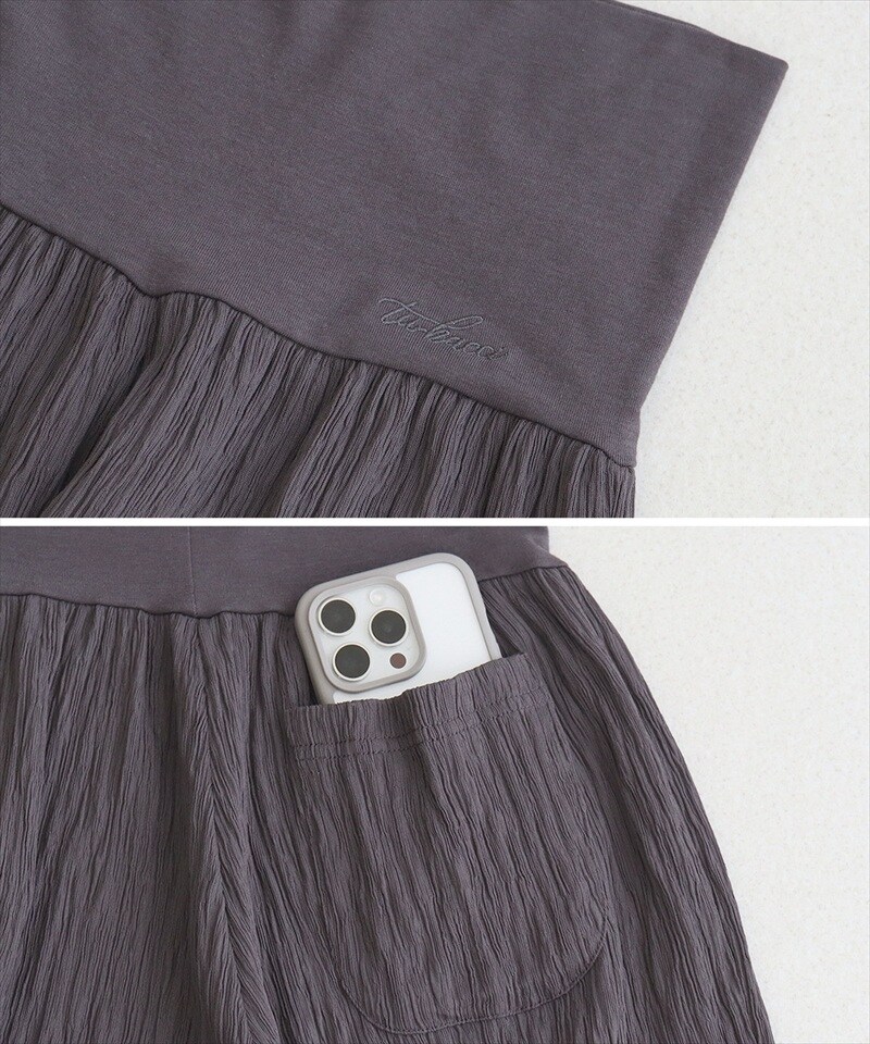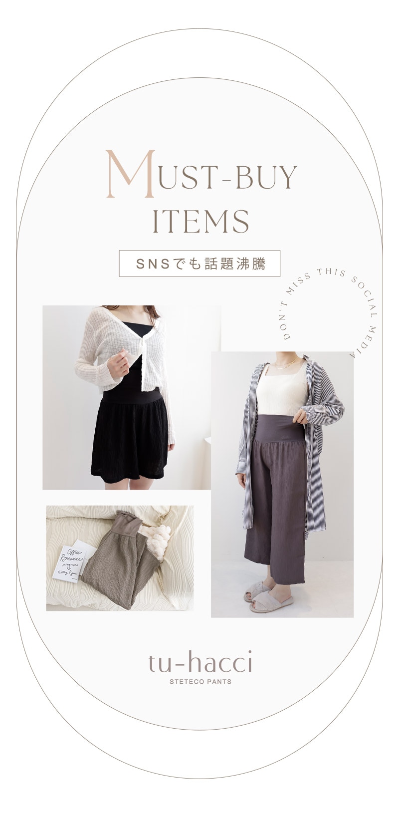 お腹をすっぽり包み込む形状は、マタニティウェアとしてもおすすめ♪